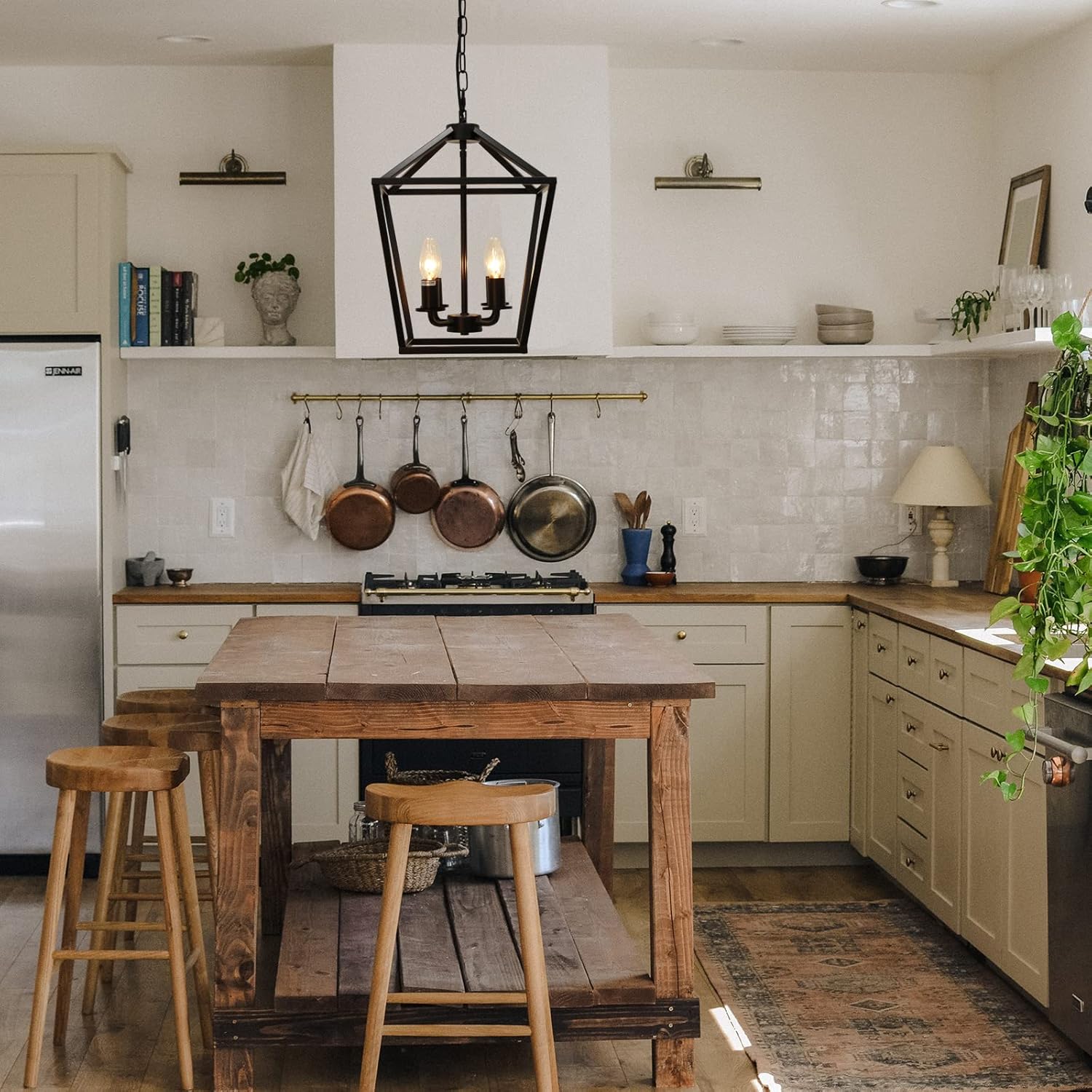 - 【Rustic Lantern Pendant Light】The Industrial black geometric pendant lantern is suitable for your farmhouse decor.vintage mid-centry elements add more fun for your home,dining room,kitchen island,foyer,entry,cafe bar.
