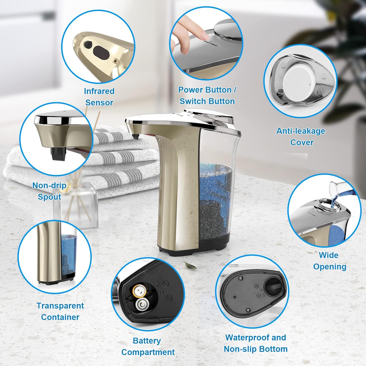 - [Wide Compatibility Soap Dispenser] This touchless soap dispenser operates on 4 AA Alkaline batteries (not included), which can be used in any occasion without limits on the power outlet. Suitable for multiple occasions, such as home, hotel, school, office, and other places. We will provide 2-year quality assurance and lifetime professional service, please reach out to us if any help is in need.
