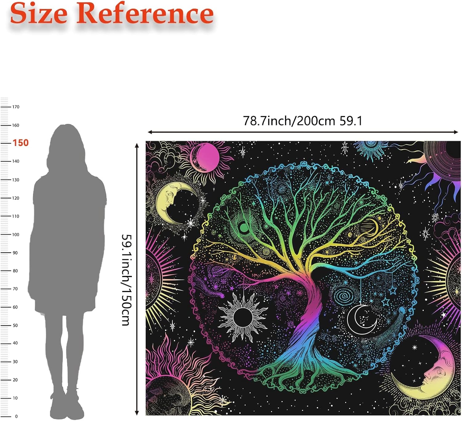 - This tapestry is unique design with tree, sun, moon, stars, and galaxy space elements. It's made from high-quality polyester fabric, which is skin-friendly, soft, lightweight, durable, and has no peculiar smell. It adopts HD-printing technology, non-fading. Feathering vivid colors, crisp lines and delicate hemming