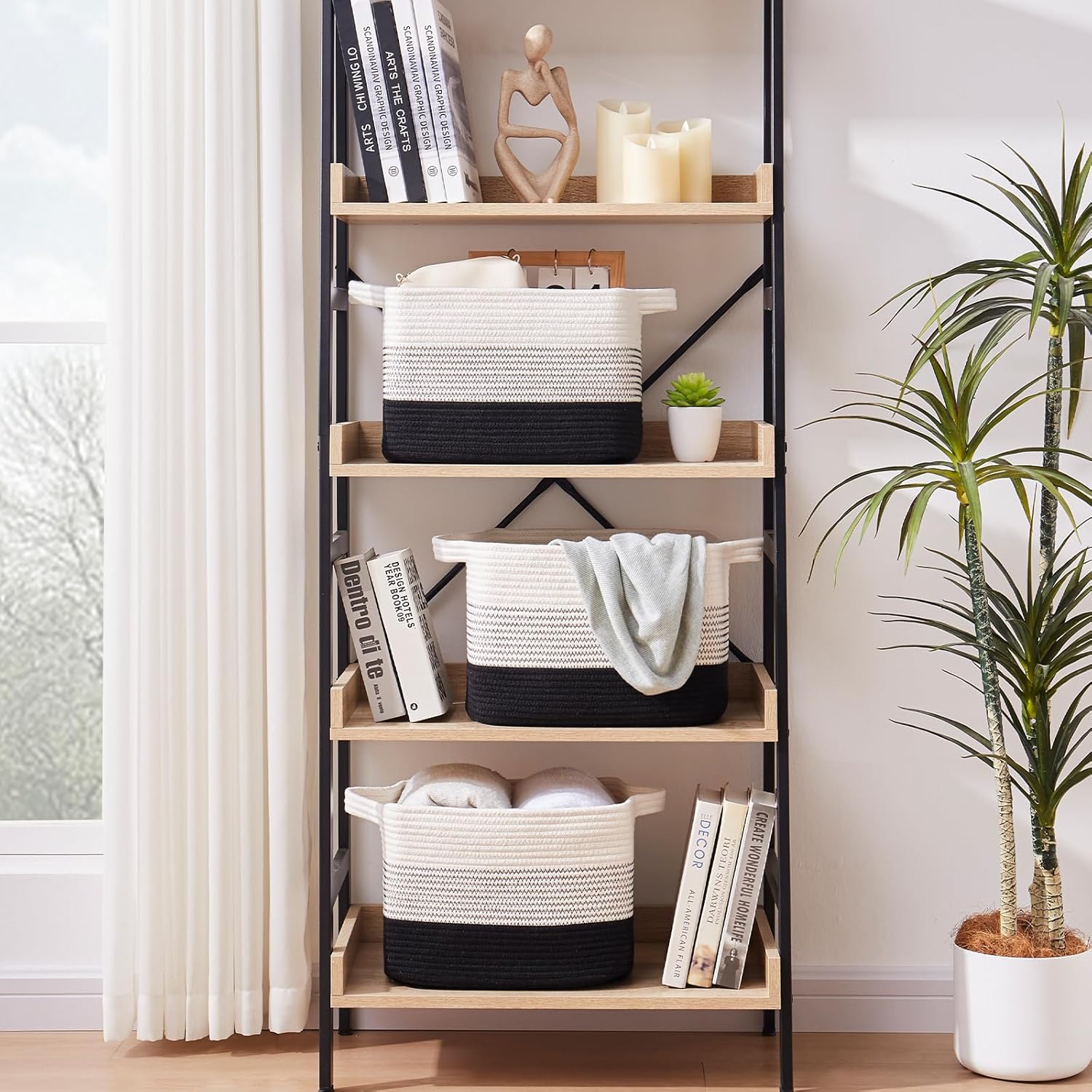 OIAHOMY Storage Basket, Woven Baskets for Storage, Cotton Rope Basket for toys,Towel Baskets for Bathroom - Pack of 3, Gradient Dark