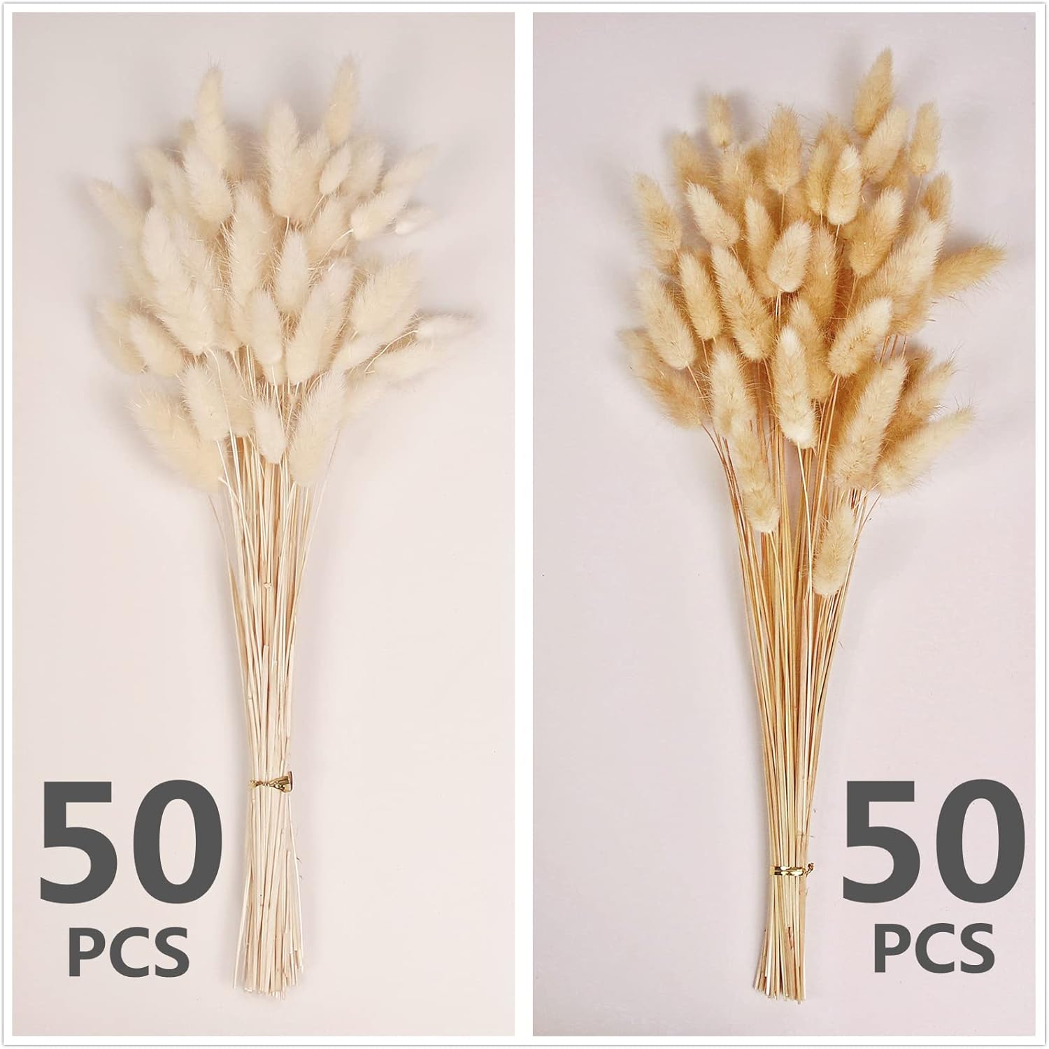- Large quantity: 100 stems of bunny tails dried flowers, sufficient quantity, including 50 stems of white rabbit's tail grass 50 stems of primary color rabbit's tail grass, mini pampas sufficient quantity, can be filled with multiple vases, better with a variety of floral arrangements