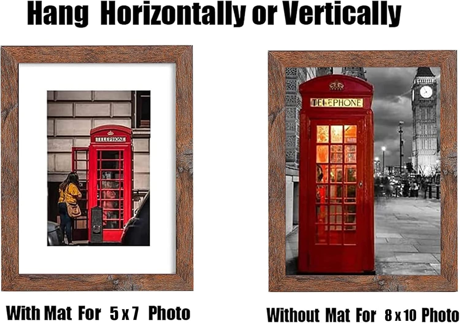 8x10 Picture Frame Set of 6, Display Pictures 5x7 with Mat or 8x10 Without Mat for Wall Mounting, Rustic Brown