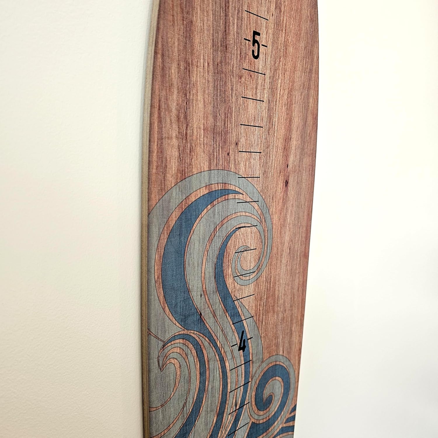 Wooden Surfboard Wall Decor Growth Chart - Surf Board Wall Decor for Kids Room, Wooden Growth Chart for Wall, Surfboard Wall Art, Surfboards for Decoration - Blue Wave (9.5"x 45")