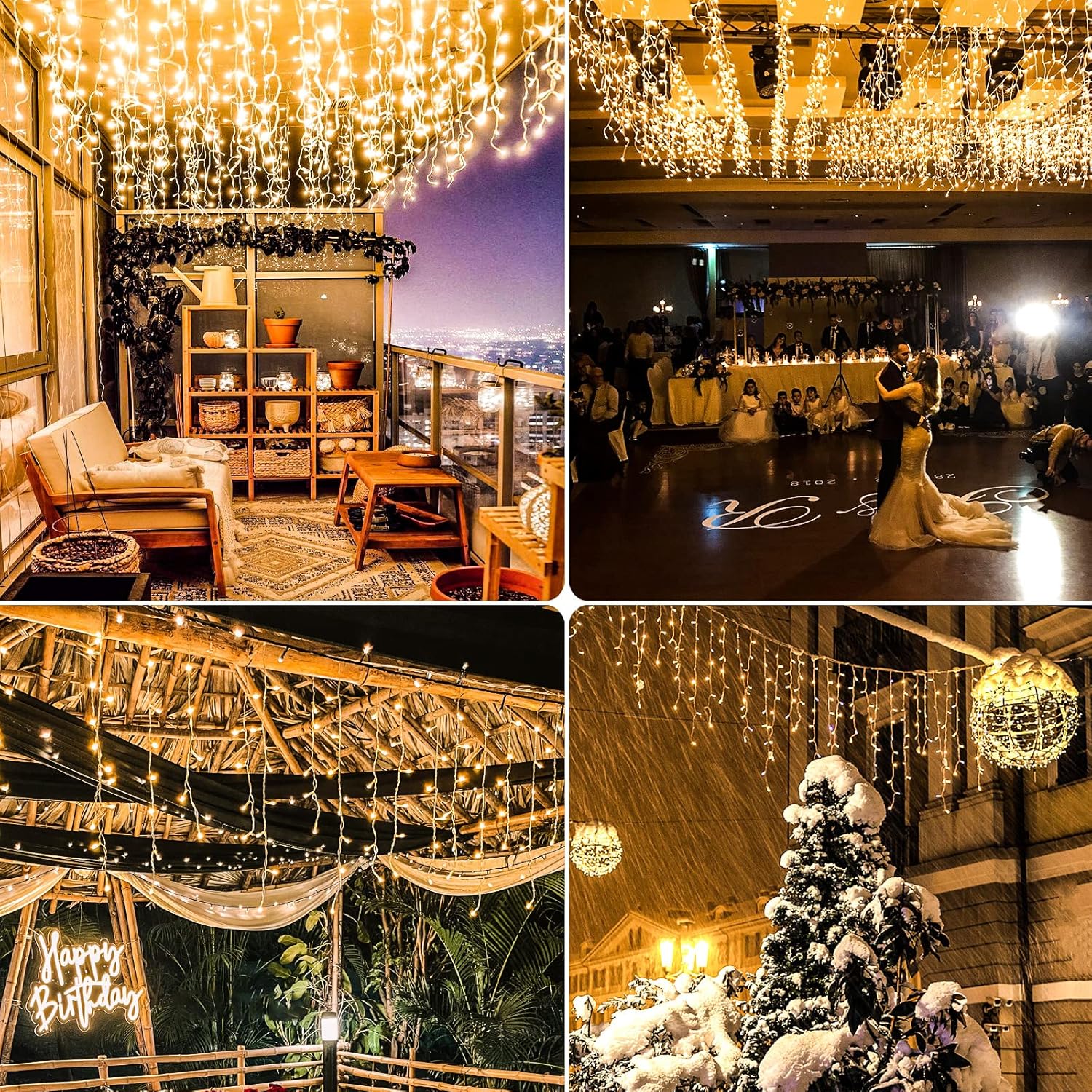 - 🔔【Waterproof&UL certified】Christmas icicle lights are IP44 waterproof, perfect for outside decoration and can work normally even in wind, rain, freezing rain, heavy snow and freezing cold temperatures. These Halloween lights are UL approved, output voltage is 29V, it's completely safe to touch. These led icicle lights are made of 100% premium copper wire and will not overheat even after prolonged use.