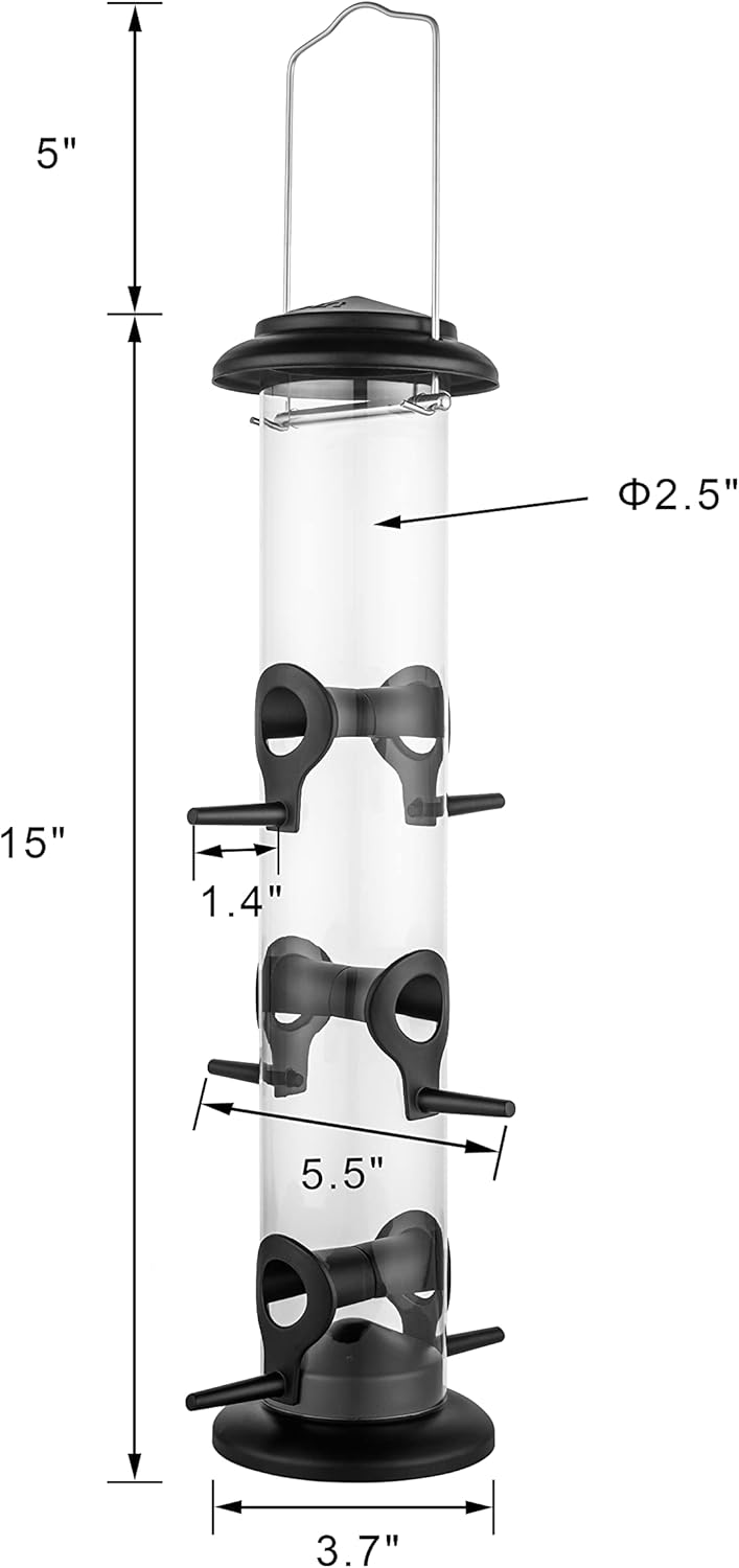 - 【Black Power Coated,No Color Fading, Great for all the year round feeding】Wear and Worn, Never Rust. All Metal top, base, feeding ports, perches, black power-coat,rust resistant, robust construction to sustain all weather days. It features royal-stylistic black outlook, traditional design inviting more feather birds to your garden, add more liveness to your garden life.