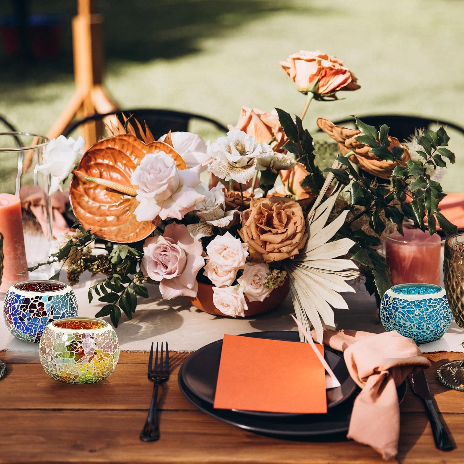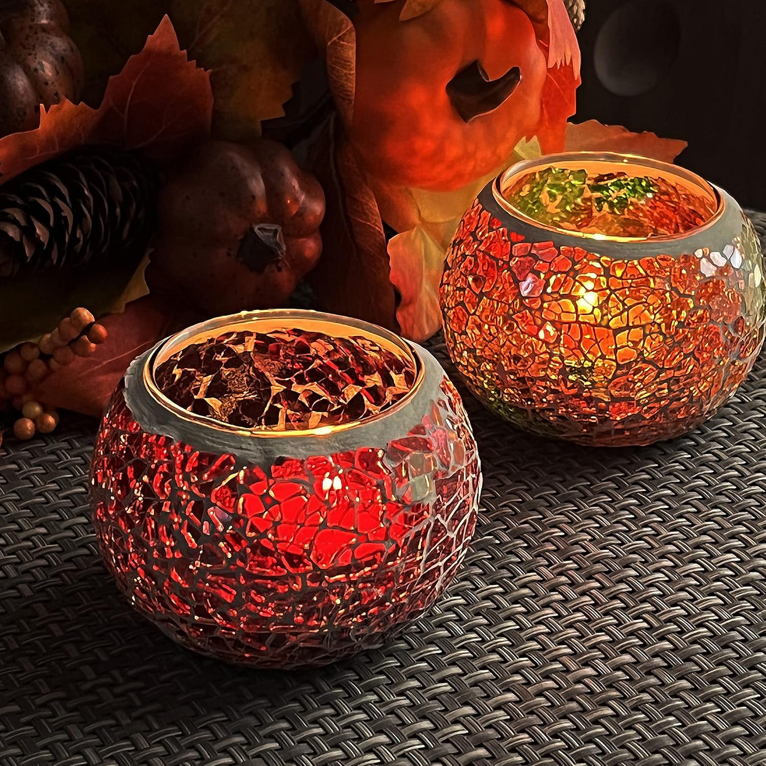 - Mosaic Candle Holder: Includes 4pcs cracked glass candle holders in 4 colors: amber, yellow, red, and blue. 100% handmade with traditional crafting techniques, creates a delicate and natural ice crack texture candle holders