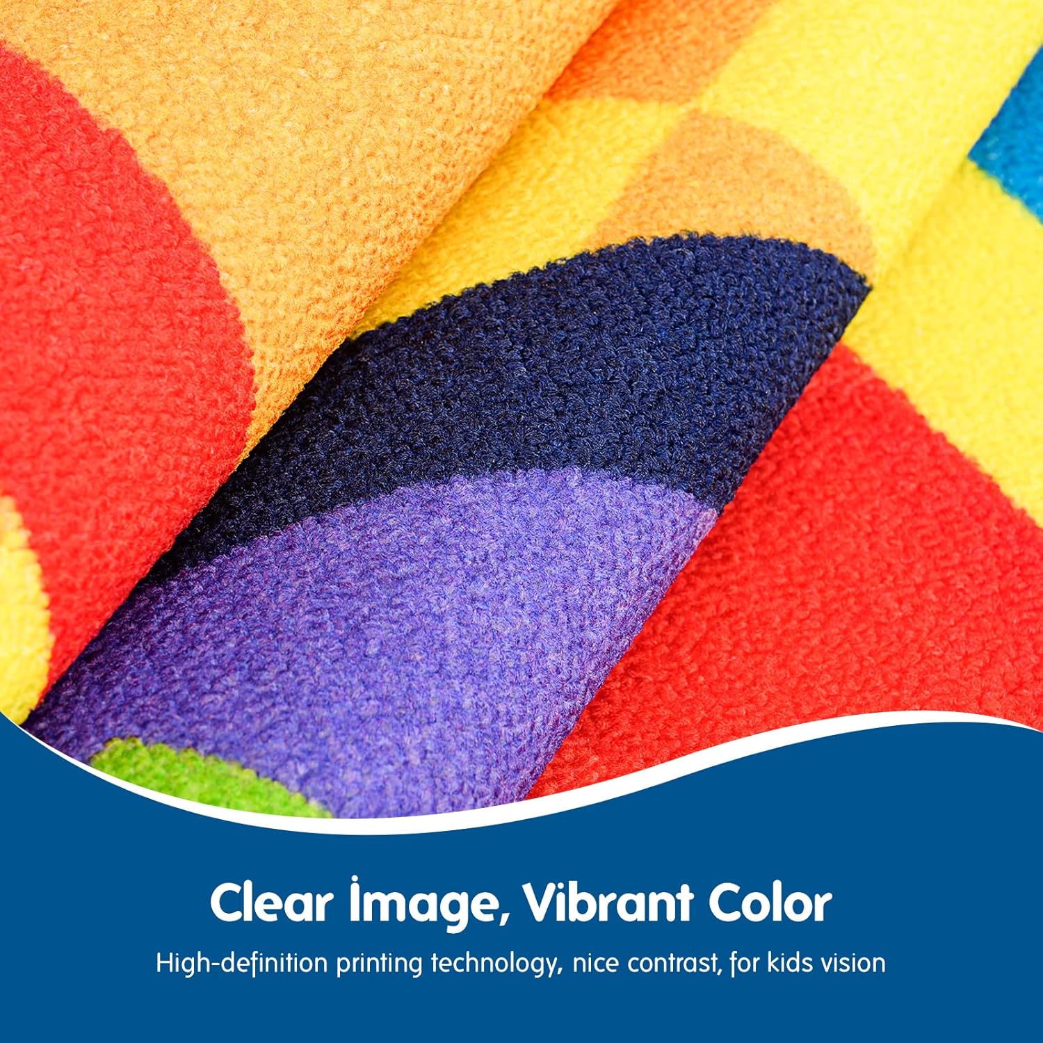 - Learning and Engaging: Vibrant colors and an eye-catching design not only enhance your classroom’s decor but also make learning enjoyable and interactive. Our classroom carpet helps children learn their colors, fostering a love for learning. Think of it as having giant educational posters for your floor