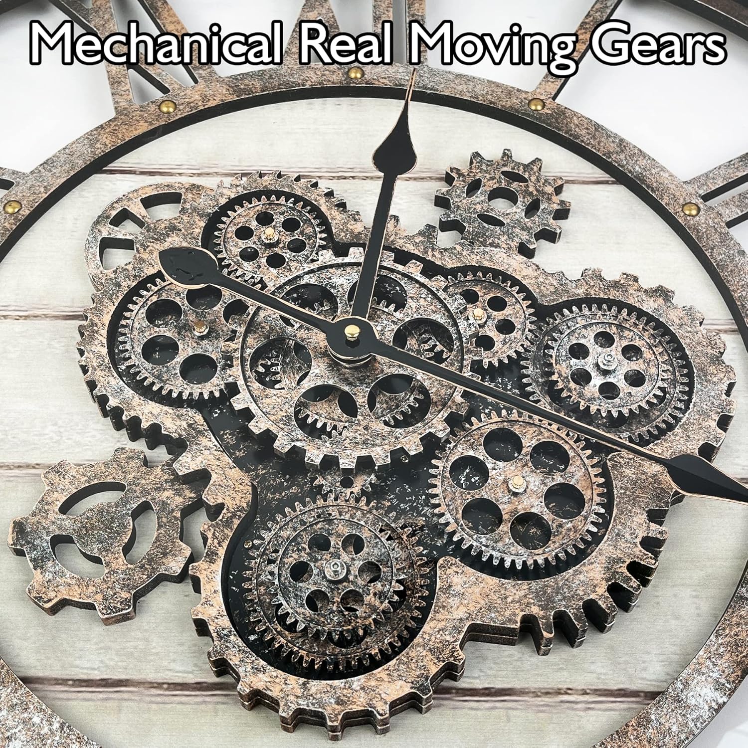 - 🧭【Real Moving Gears Wall Clock】The rustic wall clock is design with multi-real moving gears, put battery in, various gears start working, makes a subtle relaxing sound and makes a living element in the environment in where it is placed, vintage and magical, catch all eyes of visits.