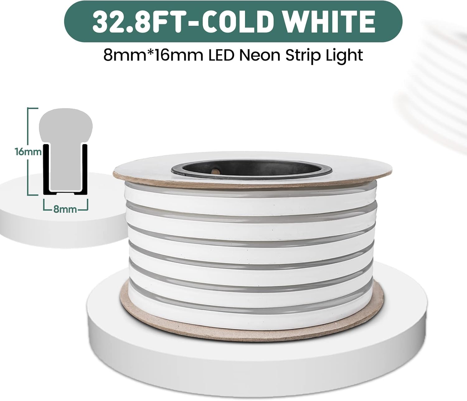 GZBtech Flexible LED Neon Rope Lights 33FT,AC 110-120V Waterproof Strip Light, 120 LEDs/M Cuttable Connectable Neon Lighting for Indoor Outdoor Home Decor/Commercial Building Use-Cold White 10M