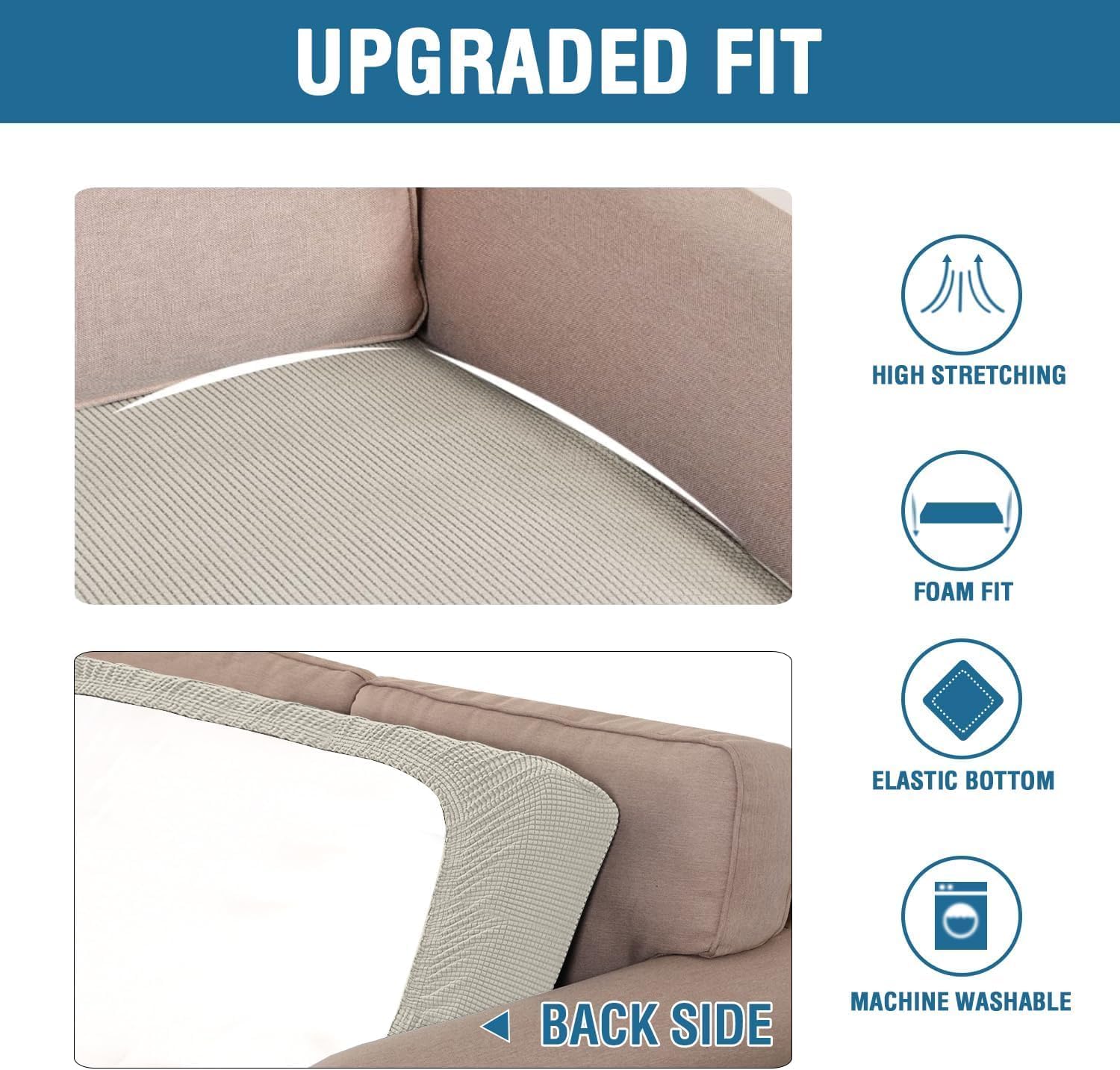 H.VERSAILTEX Super Stretch Individual Seat Cushion Covers - Sofa & Couch Cushion Slipcover Sets - Thick Jacquard Textured Twill Fabric (3 Piece XL Sofa Cushion Covers, Island Fossi)