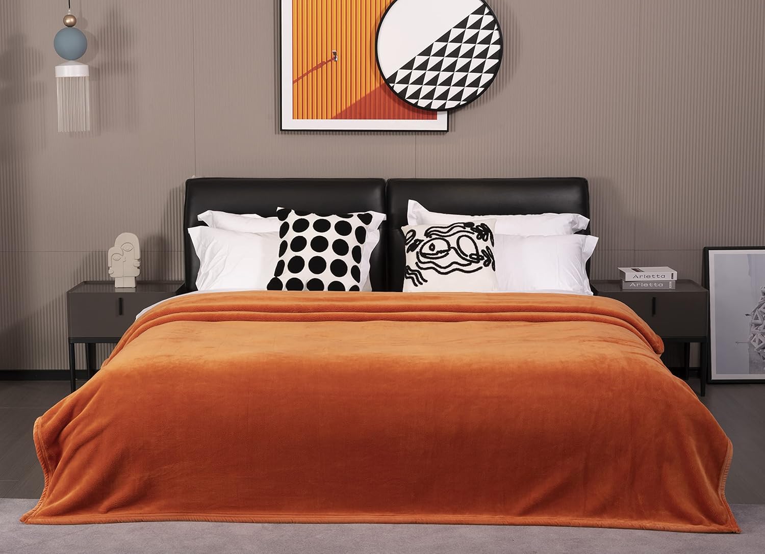 Mellowdy Extra Thick Hearty Plush Flannel Blanket (Burnt Orange, 60x80) - 500GSM Twin Size Warm Blanket for Winter, Fall | Soft, Fluffy, Cuddly, Perfect for Bed, Oversized Throw for Couch, Sofa