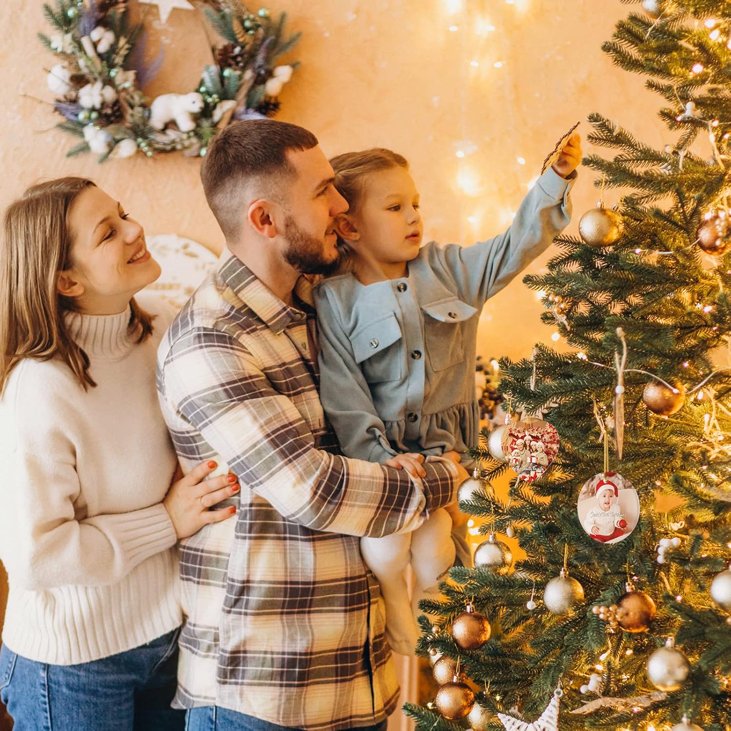 - PERFECT CHRISTMAS DECORATION - This beautiful handcrafted personalized Christmas decoration is a perfect way to hang on your Christmas tree. Gold hanging cord included, the best decoration for Christmas trees, doors, windows, walls & anywhere you want to decorate.