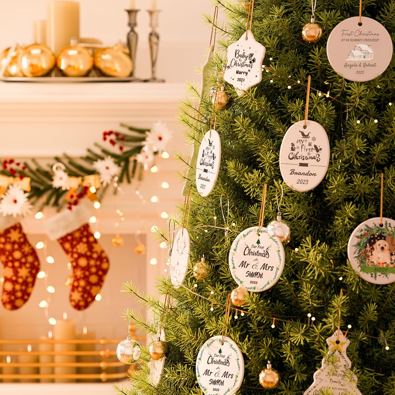 - PERSONALIZED - Different from ordinary Christmas pendants. this personalized Christmas ornament is completely customized to your needs| It can celebrate the first Christmas for babies, & cheer the first Christmas married, engaged, pets, first Christmas in new home. You can customize several ornaments to commemorate important moments. Imagine how surprised they will be when they receive the personalized Christmas Gifts.
