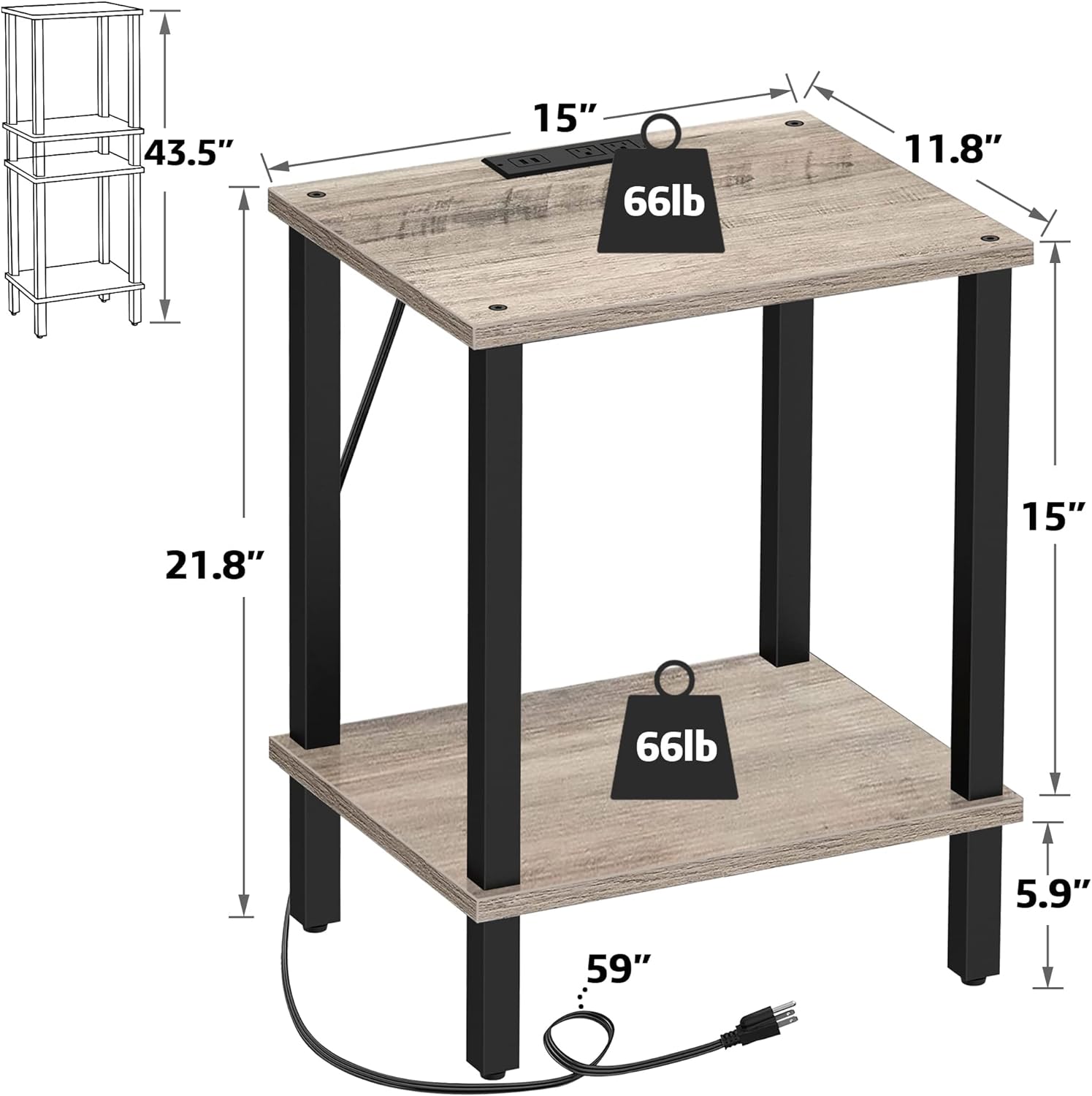 TUTOTAK End Table with Charging Station, Small Side Table with Outlets, Nightstand Bedside Table, 2-Tier Storage Shelf for Small Space, Living Room, Bedroom, Greige TB01BG040