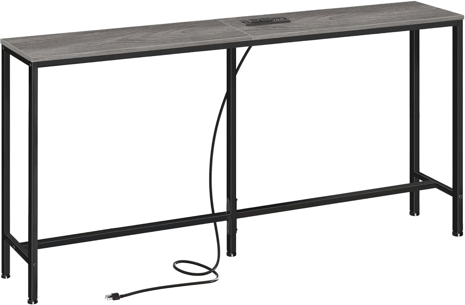 SUPERJARE Console Table with Outlet, 63 Inch Sofa Table with Charging Station, Narrow Hallway Entryway Table, Behind Couch Table Skinny for Entryway, Living Room, Plants, Charcoal Gray