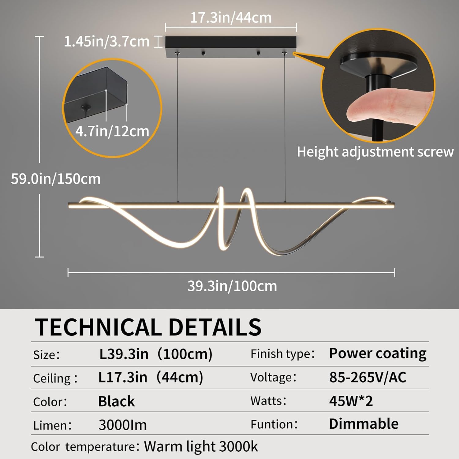 - High Quality and Long Life :Made of high quality aluminum, easy to clean and maintain, the LED light source inside the pendant is extremely energy efficient, consuming up to 80% less power and lasting more than 500,000 hours.