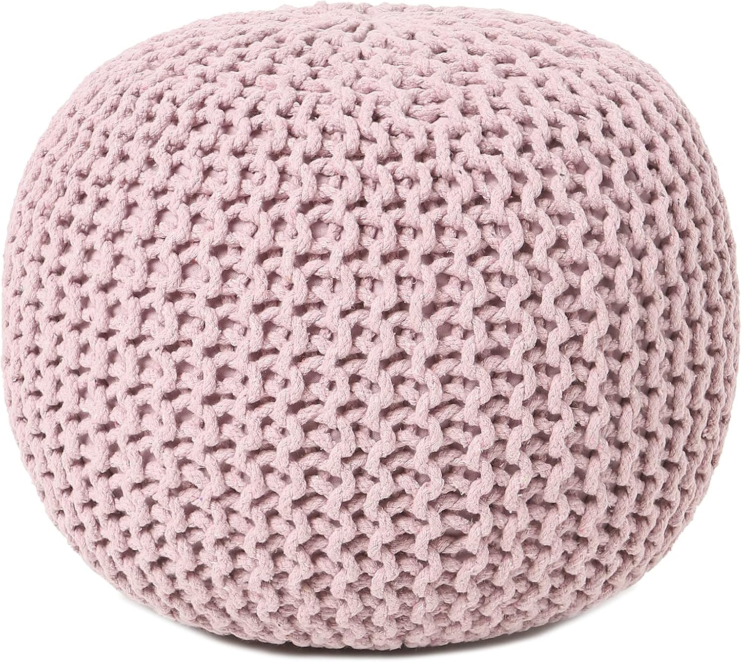 - MAKES A LOVELY, THOUGHTFUL GIFT IDEA: Our knit braided accent cord pouf ottoman is a gift that will keep on giving for many years to come. Surprise a friend or family member with one for a housewarming party, birthday, holiday, and other special occasions. Mix and match for a fun pop of color or choose one that best matches your décor and aesthetic.