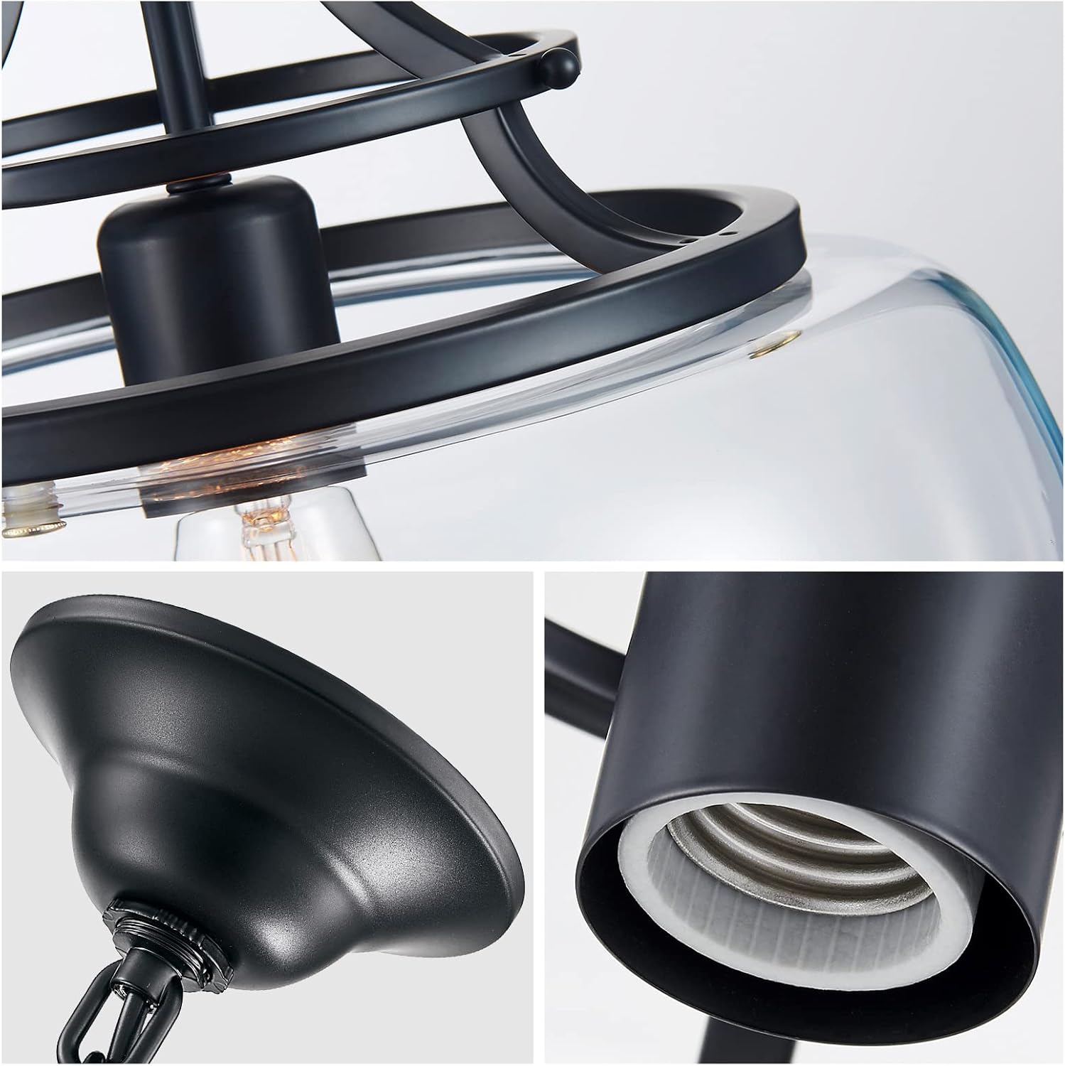 WUZUPS Chandelier Rustic Farmhouse Industrial Round Ceiling Pendant LED Light Fixture with Clear Glass Shades for Dining Room Kitchen Island Foyer Entryway, H 17" x W 13.4", E26 Base, Black