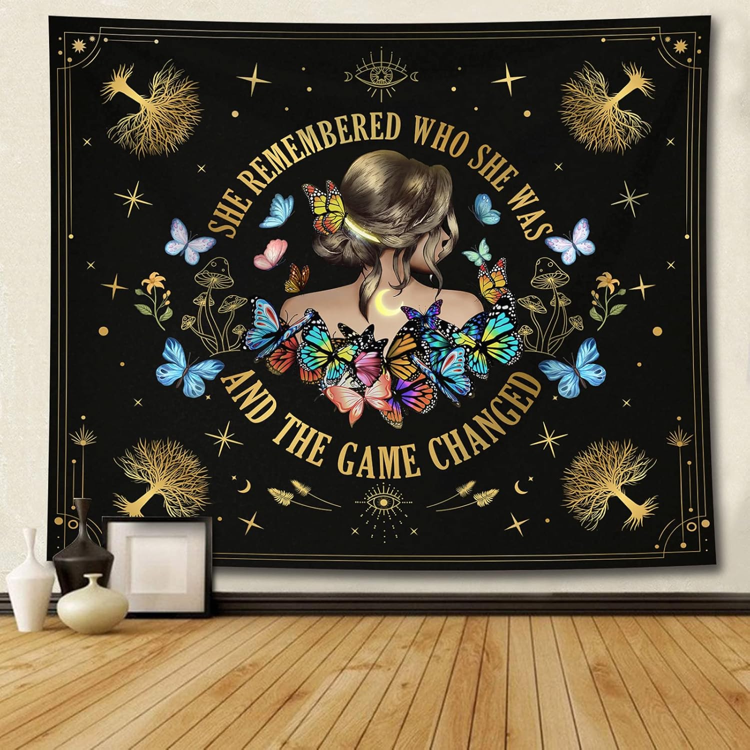Bapcoku She Remembered Who She Was And The Game Changed Positive Quotes Tapestry Inspirational Gift Wall Decor for Bedroom,Uplifting Encouragement Gifts Butterfly Gifts for Women Teens Girls 60x50in