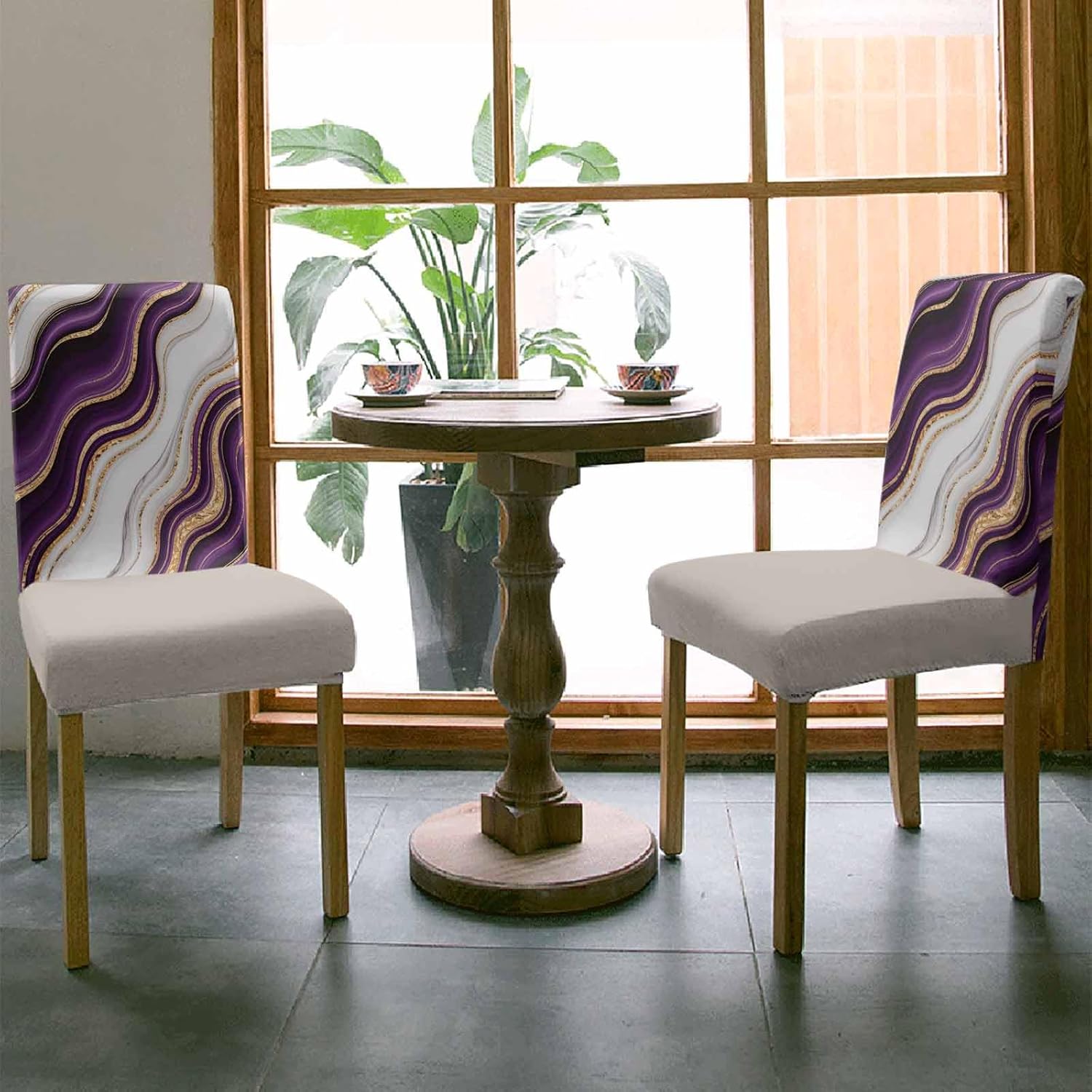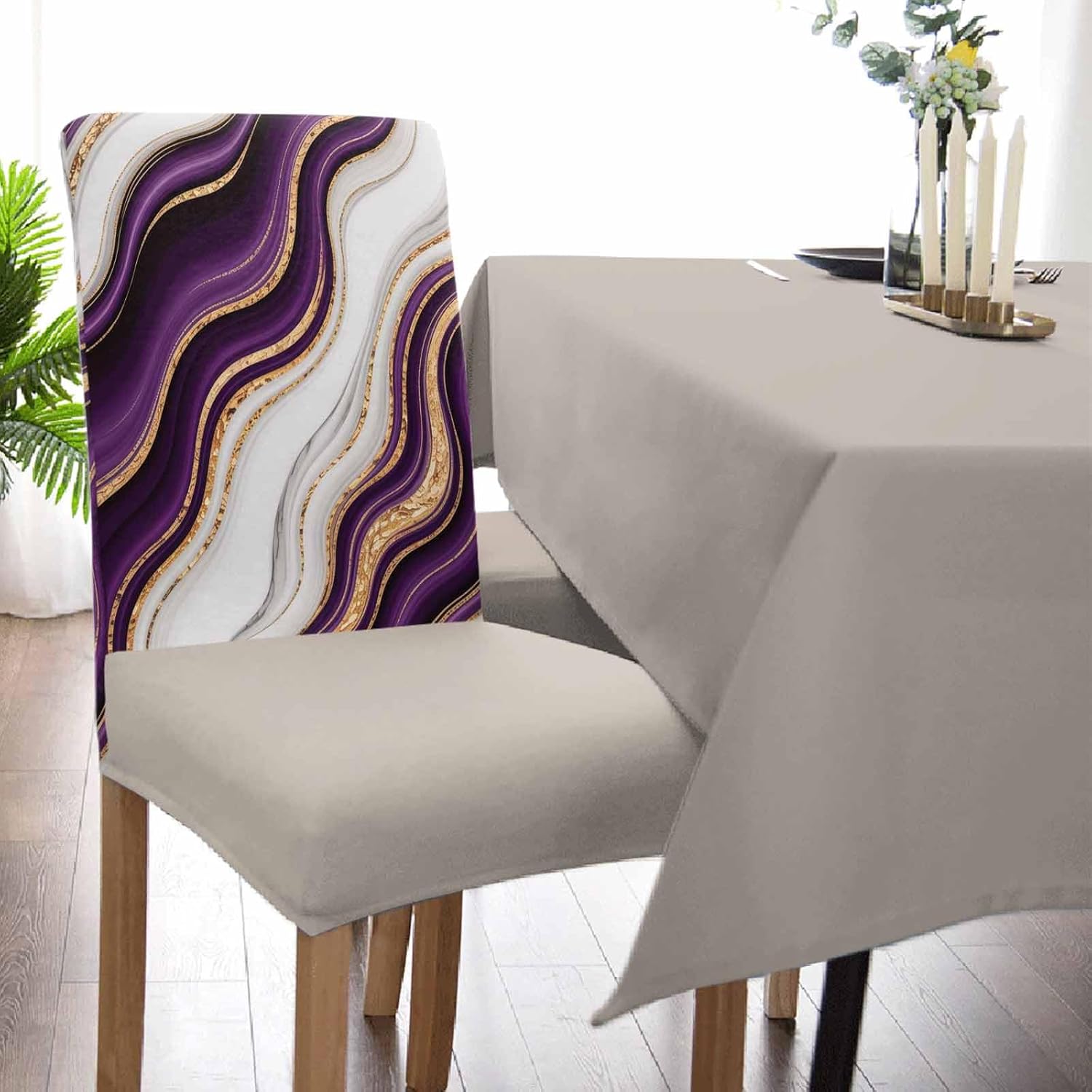4 Pcs Dining Chair Covers Stretch Spandex Slipcovers Purple Marble Gold Inlay Removable Washable Dining Room Seat Cover Cushion Protector for Home Hotel Banquet Decor Abstract Geometric Stripes