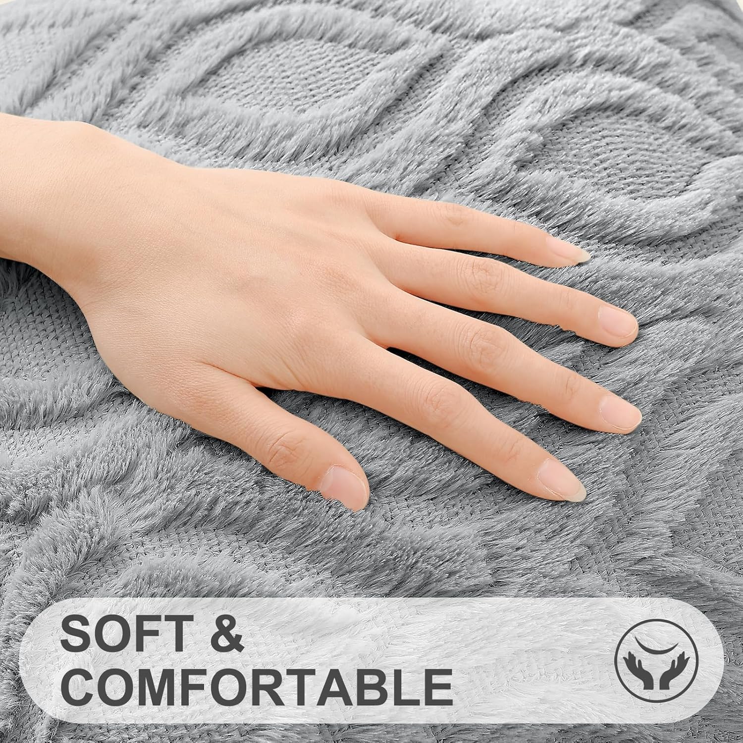 decorUhome Fall Throw Pillow Covers 24x24 Inch Set of 2, Soft Plush Decorative Faux Fur Grey Solid Couch Pillow Covers, Accent Farmhouse Neutral Square Euro Pillow Cases for Sofa Bed Living Room
