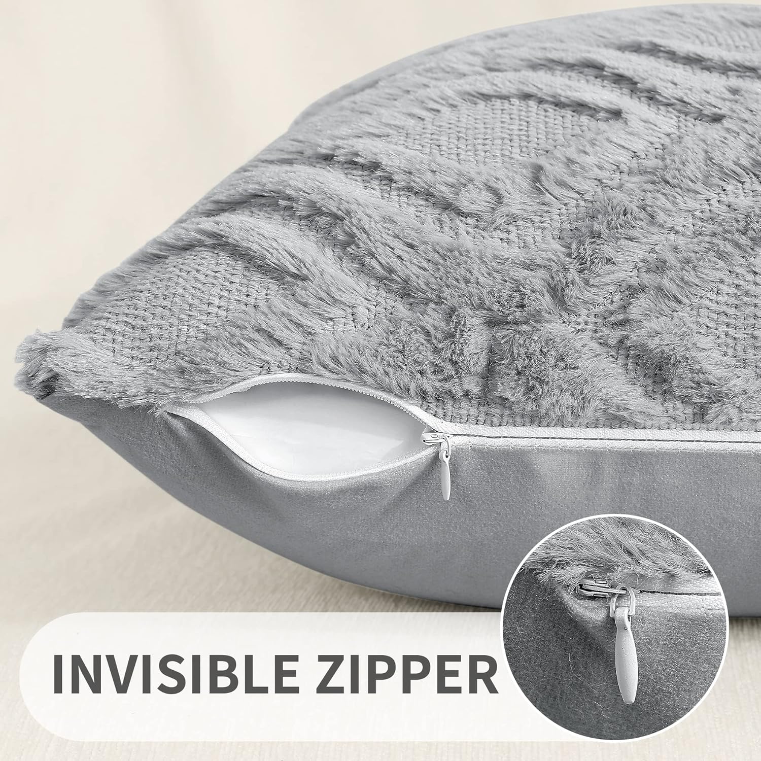 decorUhome Fall Throw Pillow Covers 16x16 Inch Set of 2, Soft Plush Decorative Faux Fur Grey Solid Couch Pillow Covers, Accent Farmhouse Neutral Square Euro Pillow Cases for Sofa Bed Living Room
