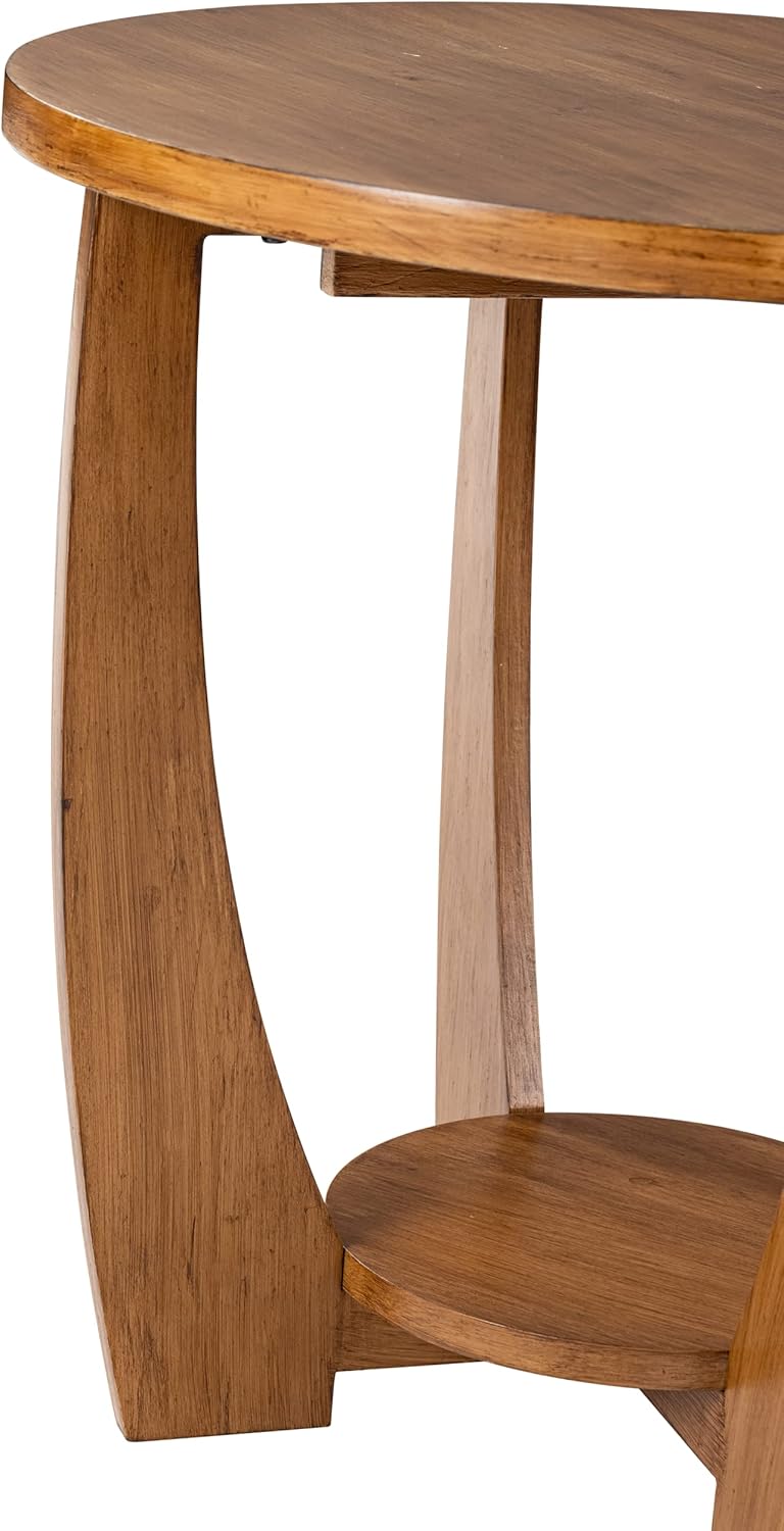 Rustic Farmhouse End Table with Storage Shelf, French Country Accent Side for Family, Dinning or Living Room, Small Spaces, Modern, Round, Vintage Caramel Brown Finish