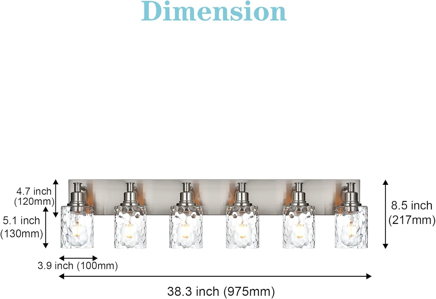 BONLICHT Vanity Light Fixture Brushed Nickel 6-Light Modern Farmhouse Wall Sconce Bathroom Lighting with Hammered Glass Industrial Wall Mount Lights for Kitchen Dining Room Cabinet Corridor
