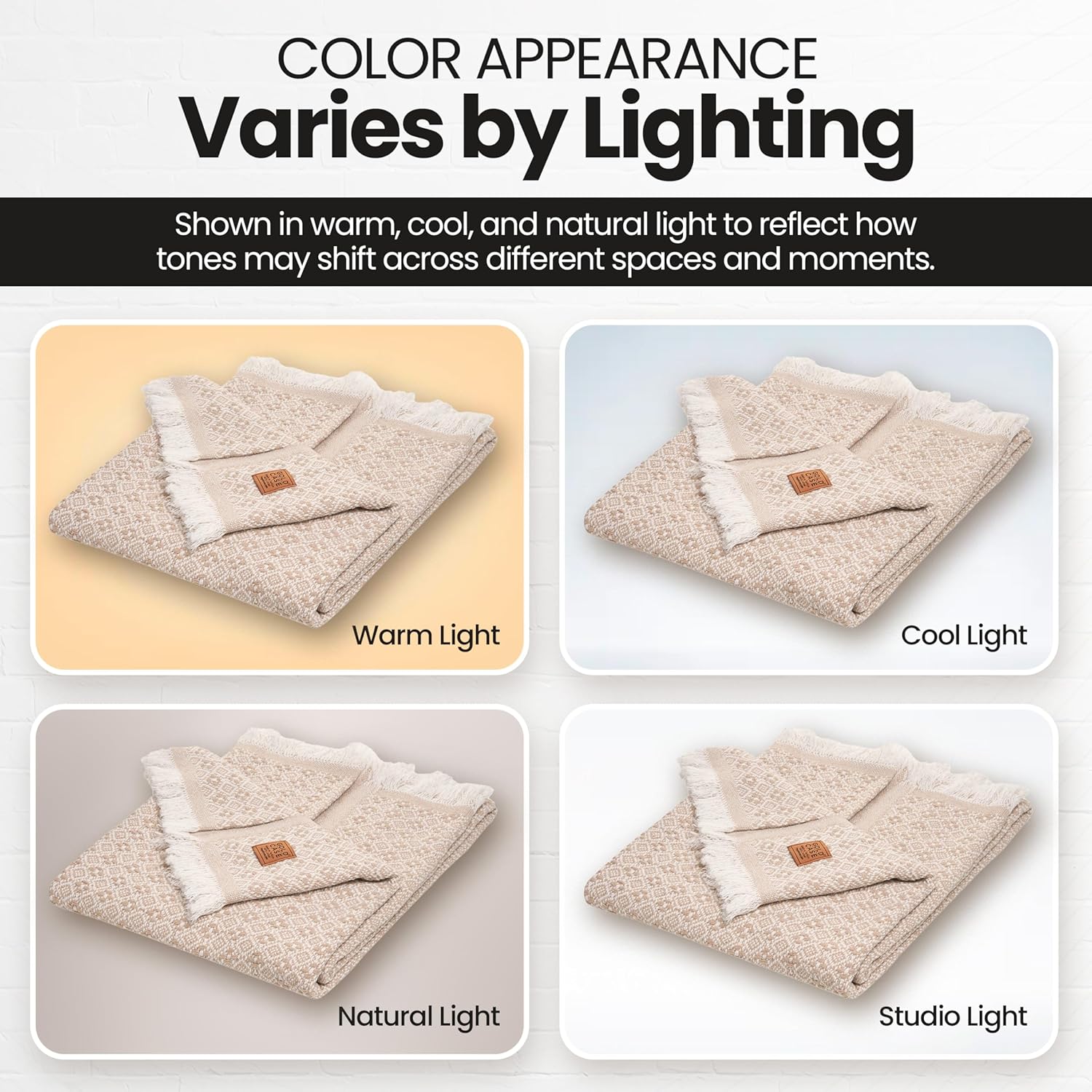 Gold Case Throw Blanket for Couch – 100% Recycled Turkish Cotton Blankets & Throws – Elegant Decorative Throw Blankets for Living Room Sofa – Woven Throws for Couch – Retro Beige – 50x60