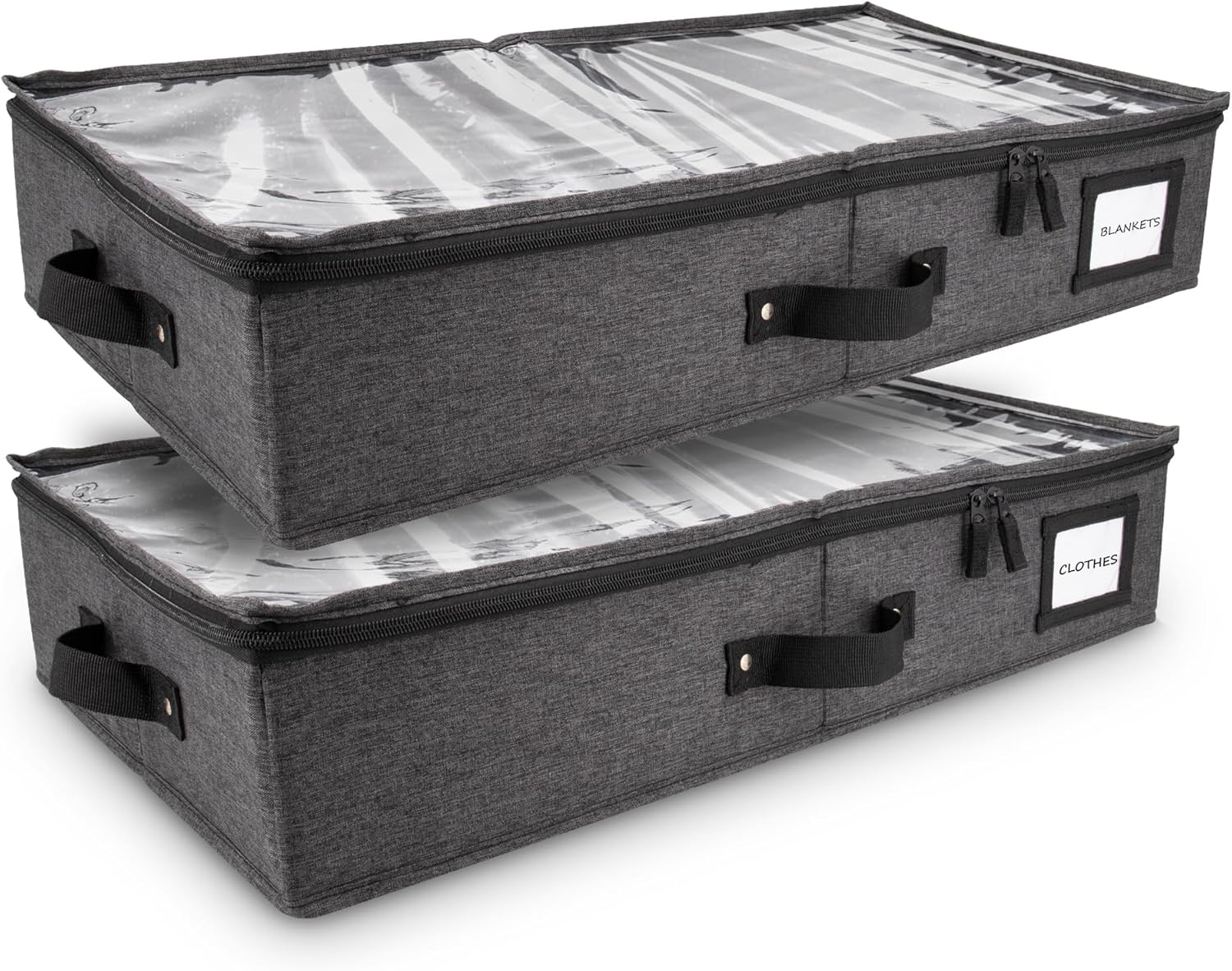 HOMELUX THEORY 2pc Under Bed Storage Containers, Bedroom Under the Bed Drawer Storage Organizer with Bins and Lids, Medium Underbed Clothes Storage Box Ideal for Blanket, Fabric, & Shoes (Dark Gray)