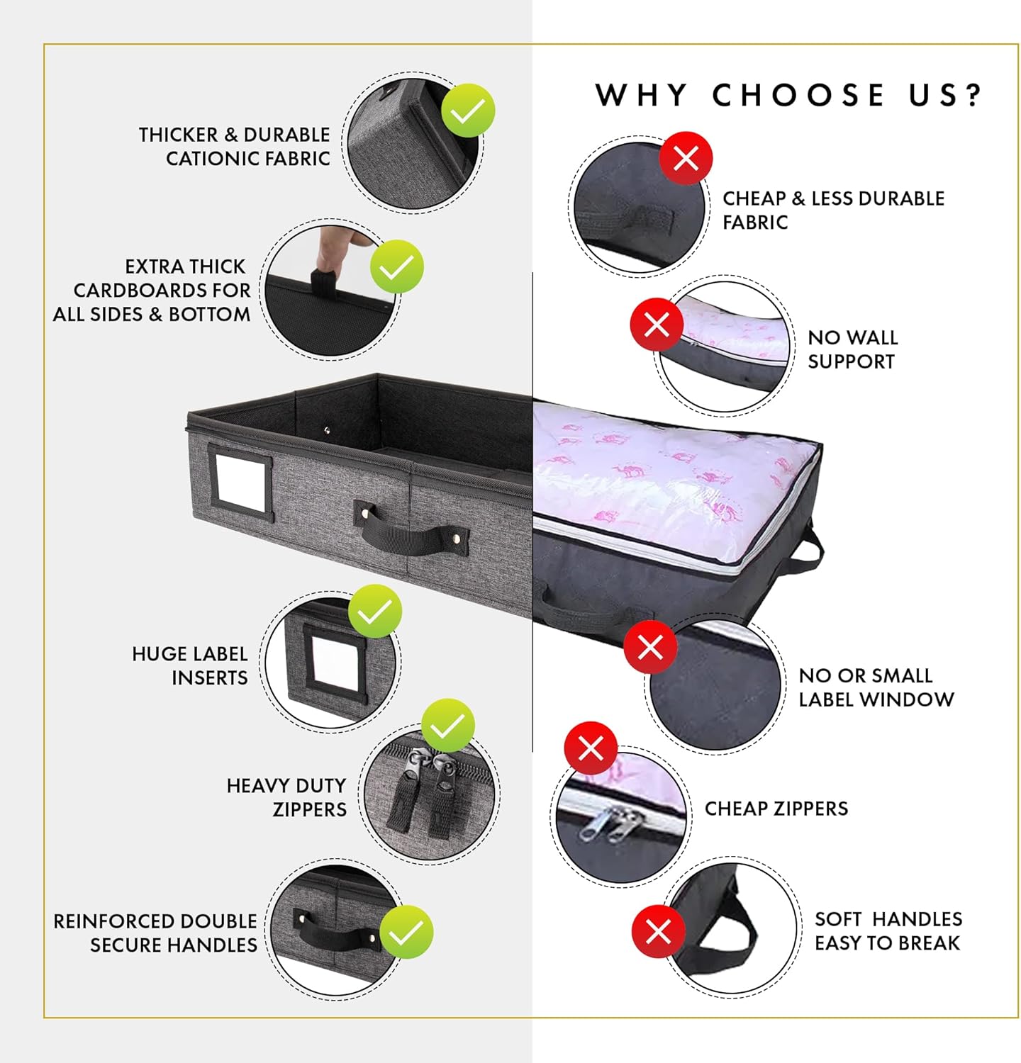 - 𝐄𝐱𝐭𝐫𝐚 𝐓𝐡𝐢𝐜𝐤 𝐒𝐭𝐮𝐫𝐝𝐲 𝐂𝐚𝐫𝐝𝐛𝐨𝐚𝐫𝐝𝐬: Unlike most under bed storage box, Homelux Theory's under the bed storage containers come with extra thick cardboard on each side and bottom part to help hold their shapes and withstand frequent use & heavy loads. While other under box for clothes and shoe organizer under bed storage in the market usually has flimsy sides made of thin, lightweight materials, our timeless storage boxes for under bed are crafted for long-term durability and reliable performance.