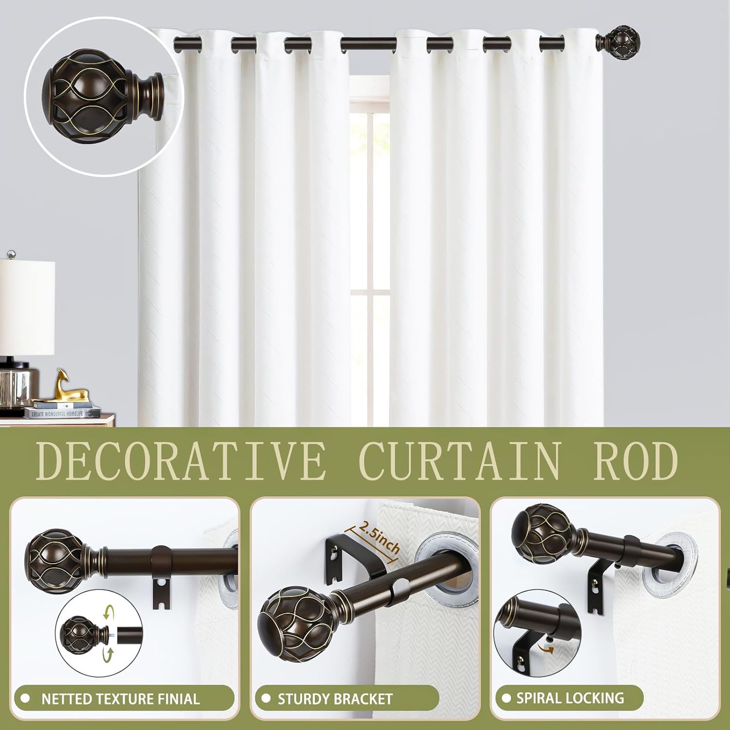 - 2 Pack Easy to Install Curtain Rods: TANGWIN provide detailed illustrated size instructions and modern decorative window curtains rod shipping package has detailed installation instructions inside, follow the steps, 2 pack antique bronze curtain rods can easily complete the installation.