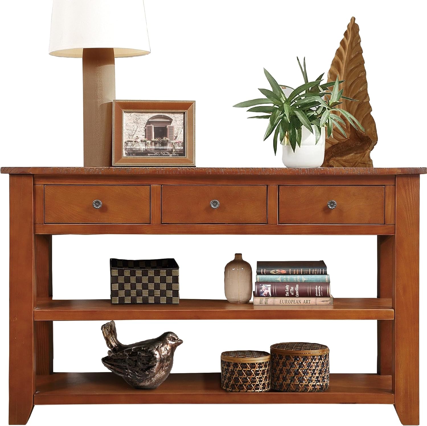 - 【Console Table with Drawers and Shelves】This sofa table has drawers and bottom partitions to give you plenty of storage space to sort and store different items. Perfect for displaying decorations such as paintings, photos, flowers and other things you can think of.