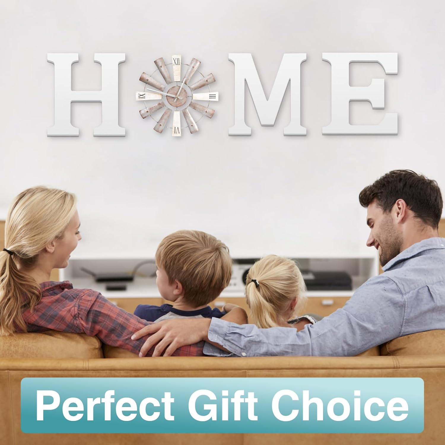 ZAZIWZ Farmhouse Home Signs with Windmill Clock Wall Decor Rustic Home Letters Wall Art for Living Room Kitchen Entryway Dining Room Bedroom (white)