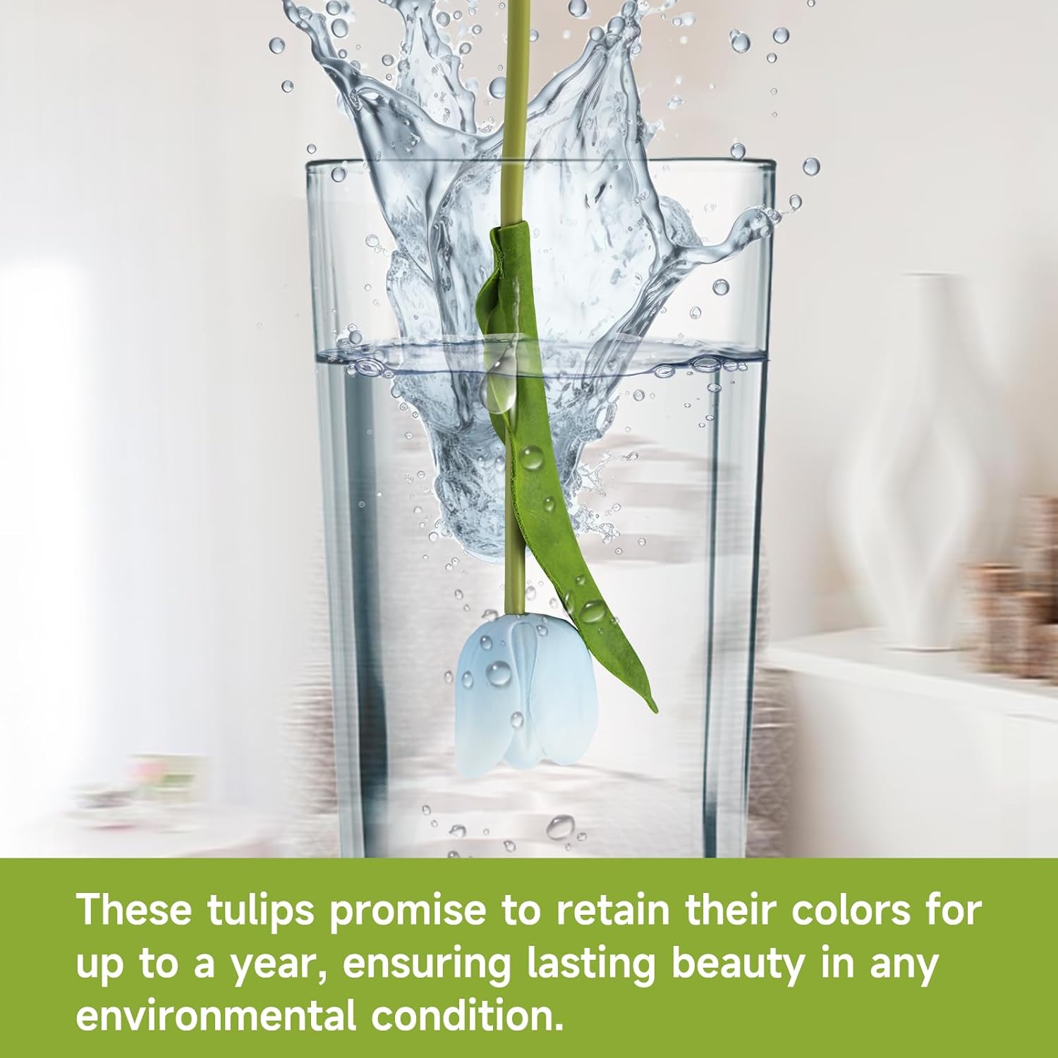 - Larger Flower Size: The size of the blooming flowers has been increased to 2.4 by 2.6 inch inches,making them more eye-catching and realistic,this means they're now even more of a focal point in a room,whether on a table or as part of a bouquet.The total length of the flower and stem is 13.5 inches,they are soft and easy to cut,you can easily resize them to fit your vase.The package includes 12pcs tulips.