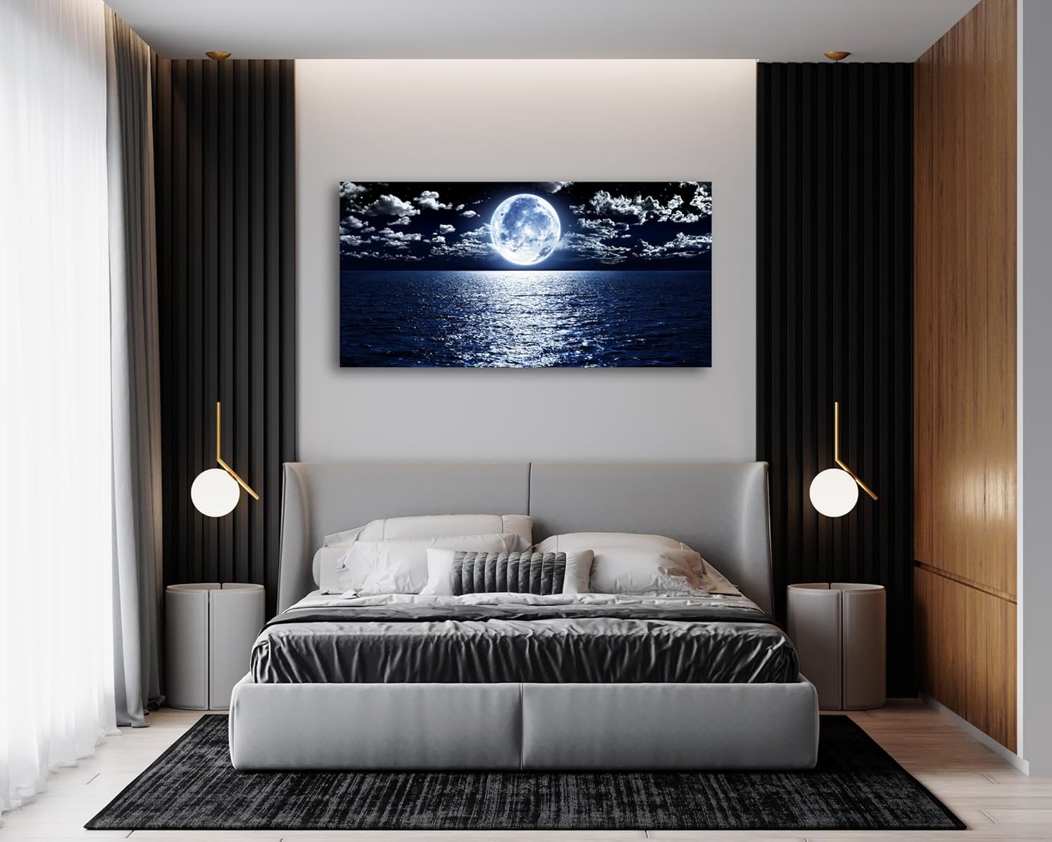 Cao Gen Decor Art S06950 Wall Art Canvas Prints Moon Sea Ocean Landscape 1 Panels Full Moon in Cloud Pictures Paintings Stretched and Framed for Living Room Bedroom Kicthen Office Artwork 20x40inch