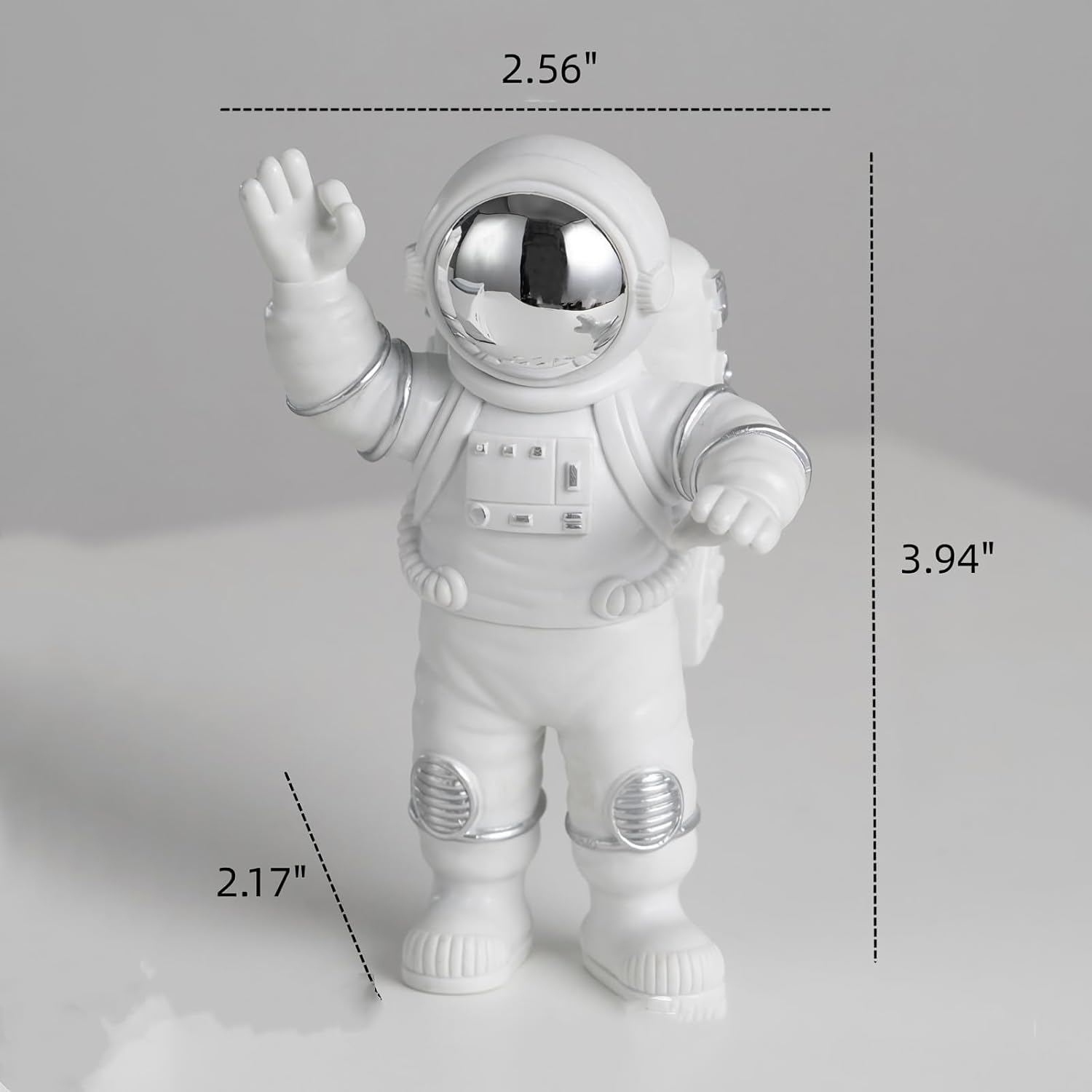- Decent Size - seating moon astronaut statue L 1.97 "(5 cm) x W 1.57" (4 cm) x H 3.11 "(7.9 cm), walking astronaut statue L 1.97 "(5 cm) x W 2.04" (5.2 cm) x H 2.9 "(7.4 cm), waving hand astronaut statue L 2.6 "(6.5 cm) x W 2.2" (5.5 cm) x H 4 "(10 cm).