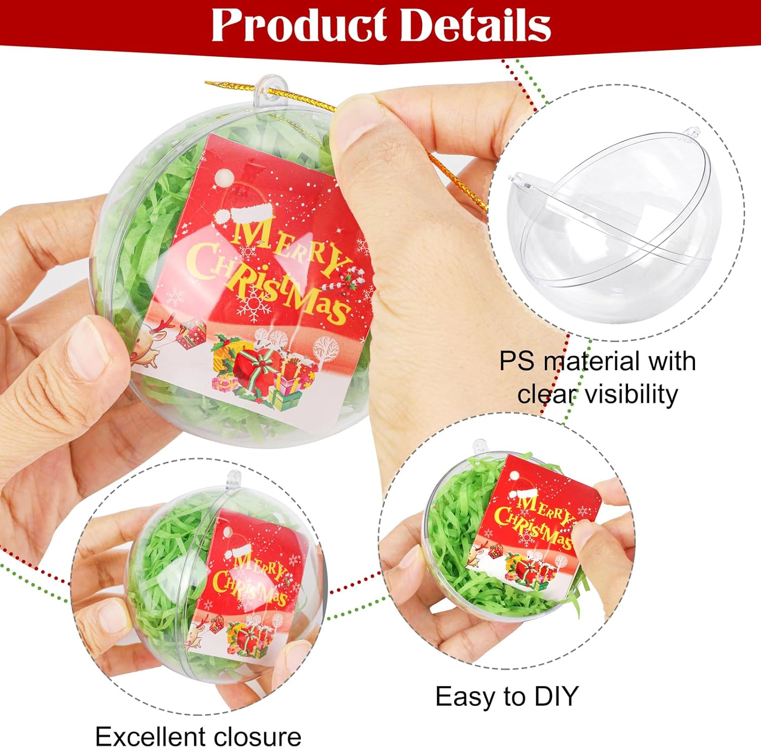 - Abundant quantity: you will receive 100 pieces of Christmas clear plastic fillable ball ornaments with a generous quantity, our packaging includes a sturdy paper box to allow these DIY transparent balls to be protected during delivery and be provided convenient storage