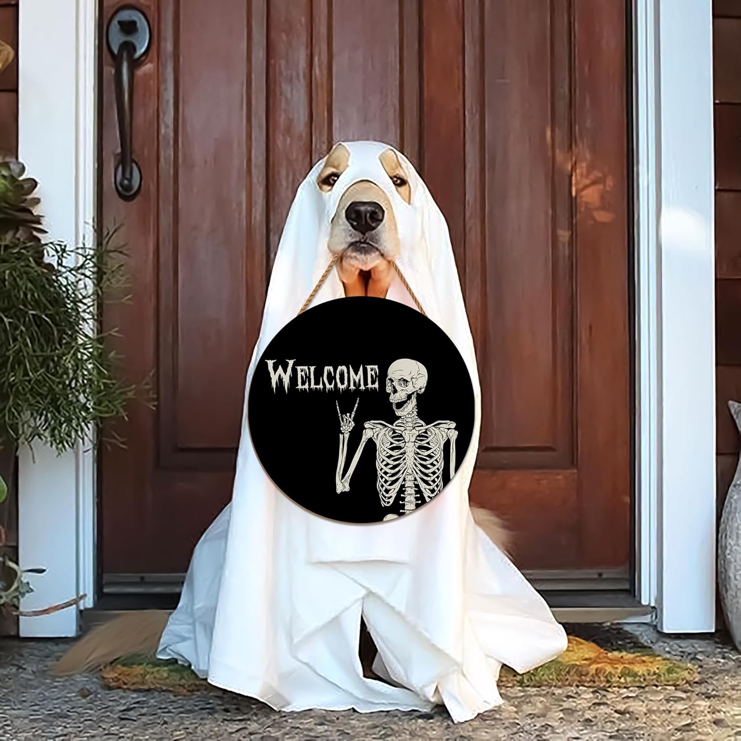 - Unique Halloween Flair: Adorn your exterior with the Skull Welcome sign, adding a captivating Halloween touch to your home. Elevate your Halloween celebrations with this exceptional hanging sign.
