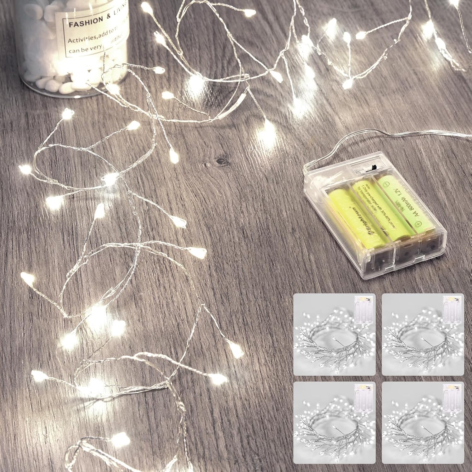 - Brighter Lights: 5 feet 3 x AA battery operated twinkling firecracker cluster lights, the luminous miniature LED light looks like a drop of light attached to a shiny wire, with a steady 360-degree viewing angle they illuminate in every direction