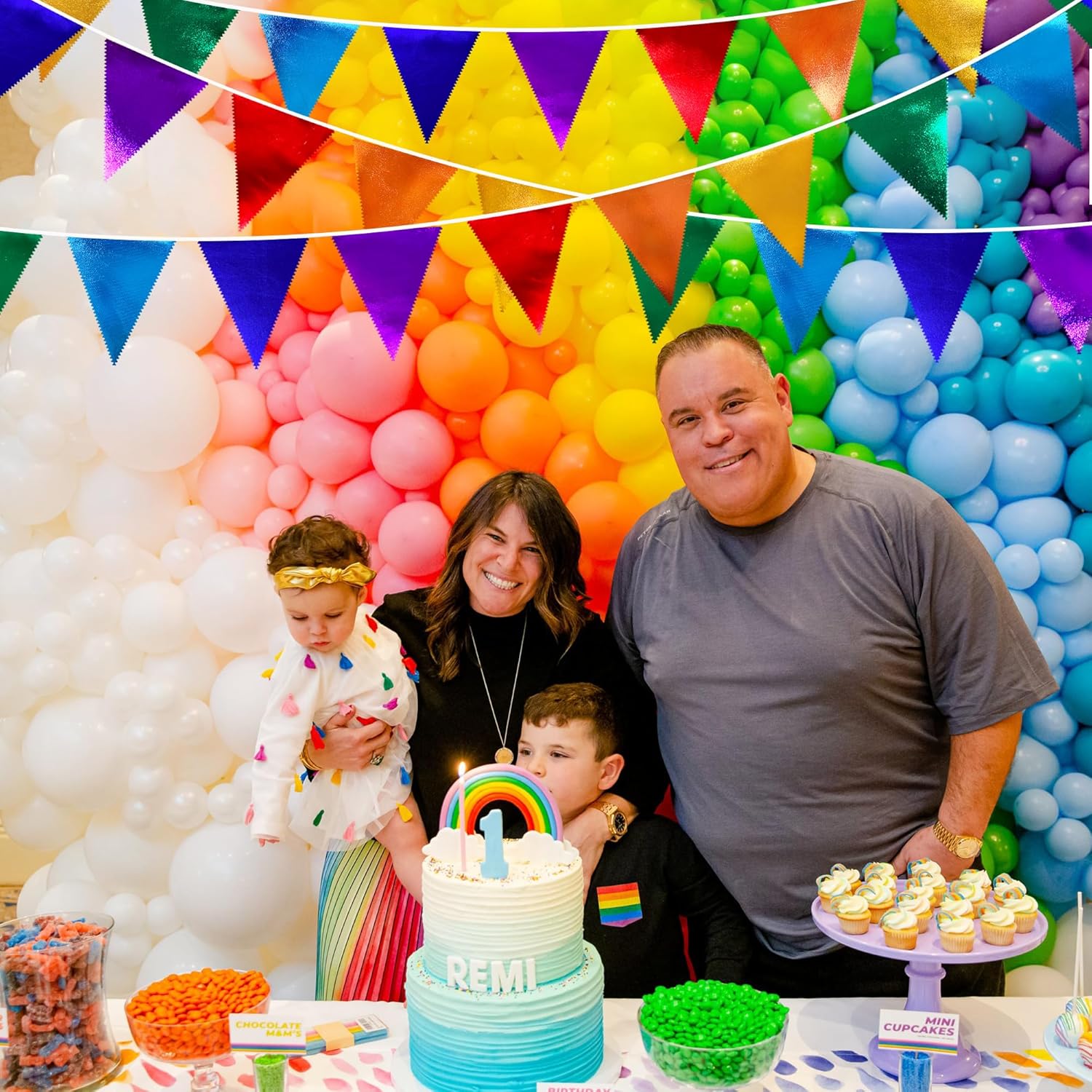 Rainbow Party Decorations Colorful Metallic Fabric Triangle Pennant Banner Flag Bunting Garland for Rainbow Fiesta Carnival Christmas Birthday Wedding Baby Shower Holiday Outdoor Party Supplies