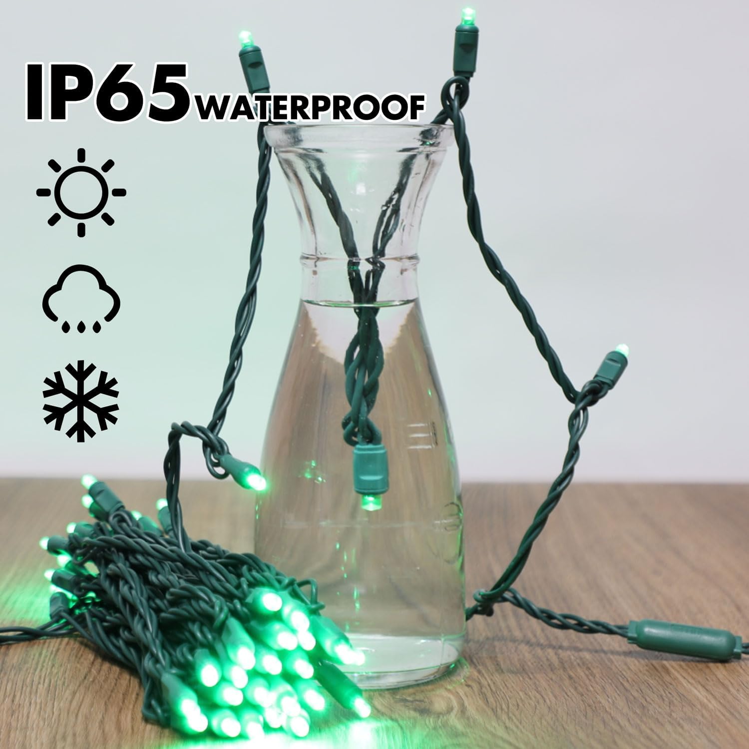- Widely Use : Indoor/Outdoor rated,Green led lights are nice and bright,use for weddings,parties,decorated patios,Christmas wreaths,garland,wrapping tree's,they light up all the lovely nights.
