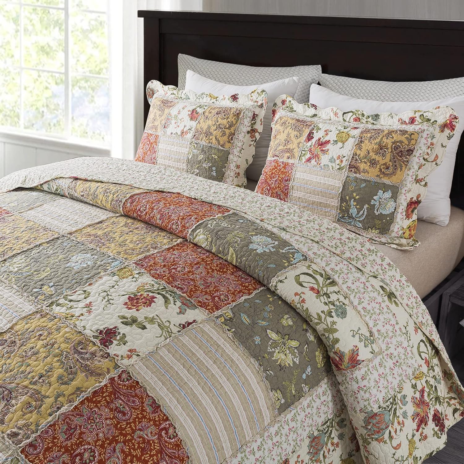 - 【Craftsmanship Patchwork】: NEWLAKE Cotton Quilts made of different pieces of individually printed floral cotton fabric that are sewn together, this bedspread showcases a Floral Paisley Grid Pattern with Real Stitched Embroidery. With its mix of floral elements and vibrant colors, this quilt adds a touch of luxury and charm to any room, instantly enhancing its appeal