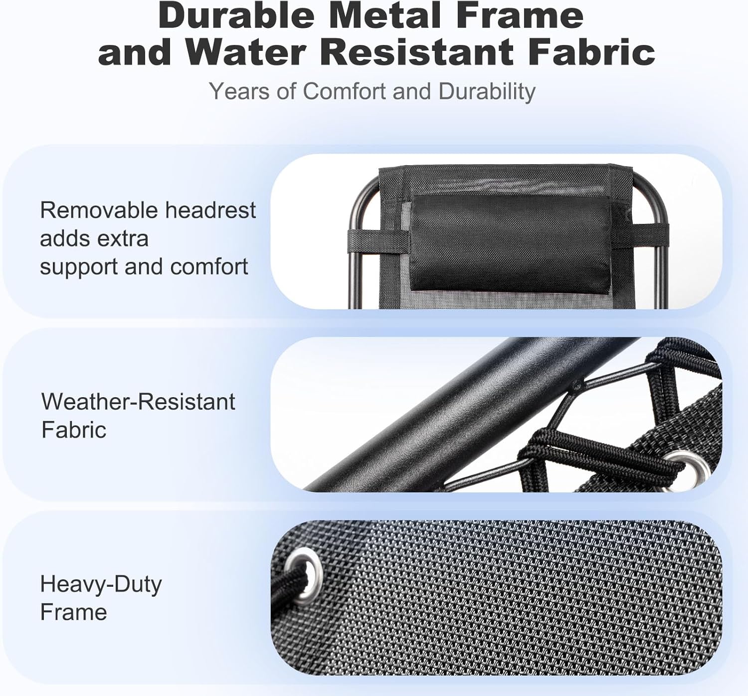 - DURABLE AND LONG-LASTING: With a high weight capacity of 300 pounds and flexible, low-wear textilene fabric, our Lounge Chairs are built to last and provide years of comfortable relaxation.