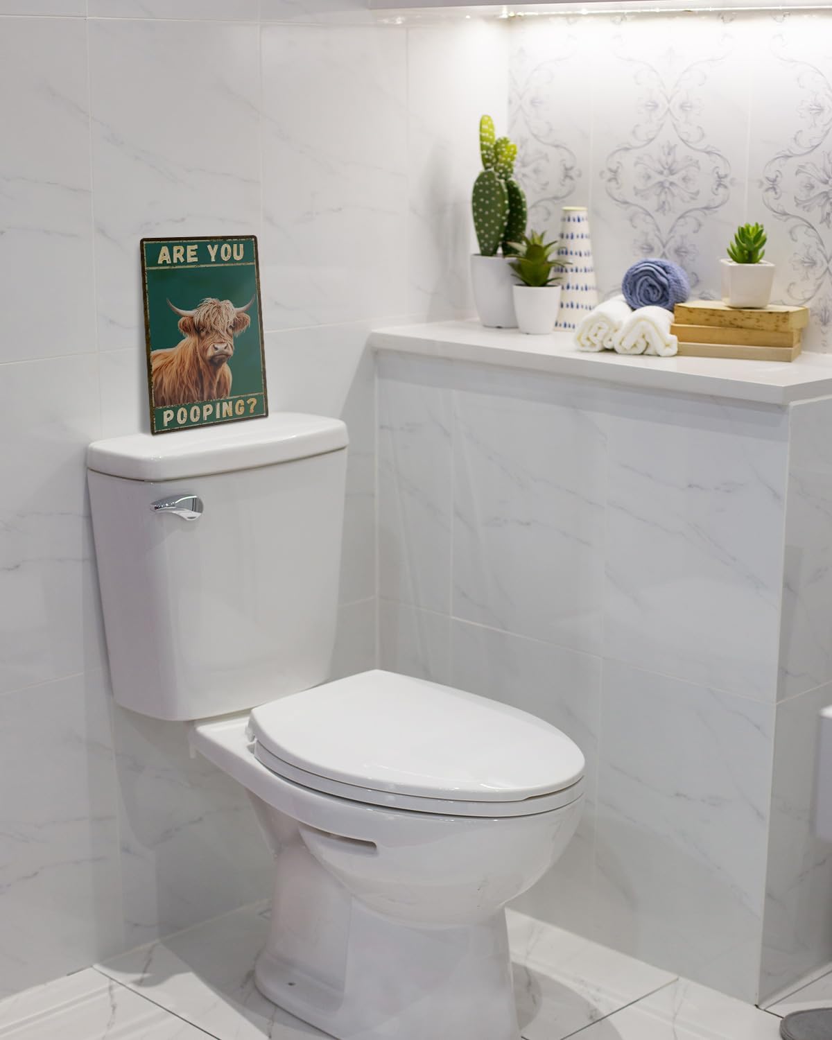- 【Farmhouse Bathroom Wall Decor】The cow wall art is designed with funny bathroom highland cow elements, that can help you express your bold style and unique artsy taste to add more funny to your space.