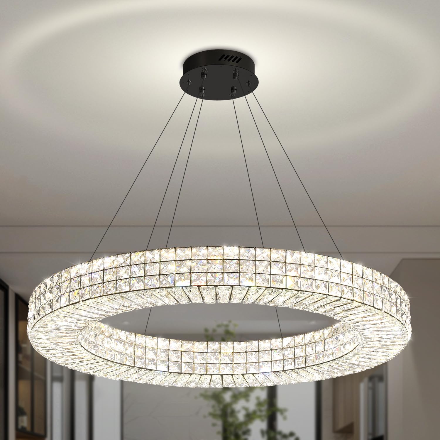 Dia 40" Modern Chandelier Ring Crystal Chandelier Adjustable Height Luxury Crystal Pendant Ceiling Light Fixture for Dining Living Room Bedroom