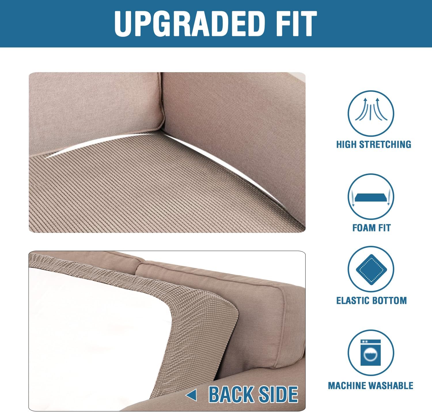 - FULL PROTECT: Products passed GLOBAL RECYCLED STANDARD certificate.These cushion covers are super soft and comfortable, natural environmental and ECO friendly. You can use it to cover not only the seat cushions of your sofa, but also the back cushions as long as they can be separated from the sofa. Protect your furniture from spills, stains and tearing. Great choice for homes with children and pets