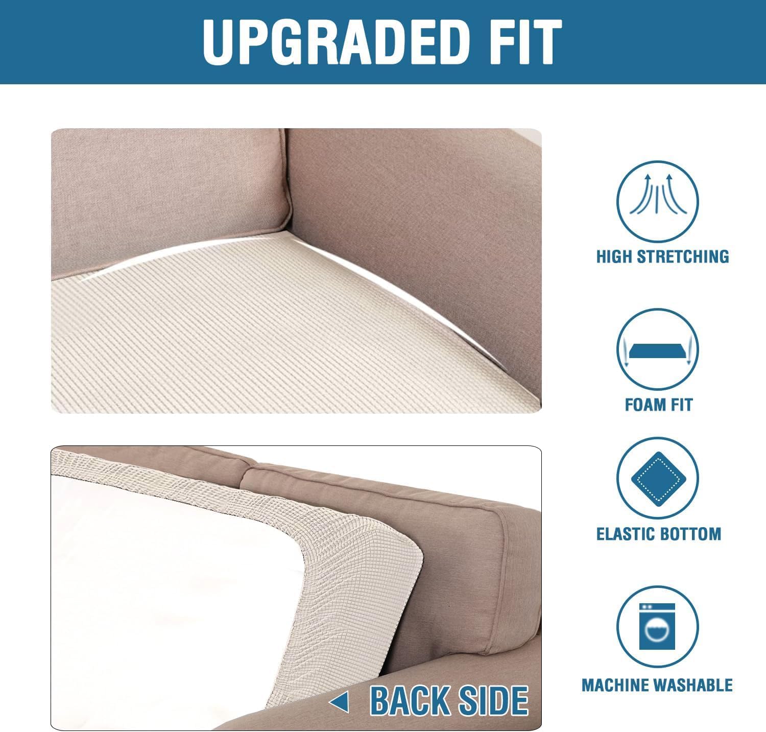 H.VERSAILTEX Super Stretch Individual Seat Cushion Covers Sofa Covers Couch Cushion Covers Slipcover Sets Thick Jacquard Textured Twill Fabric (1 Piece Chair Cushion Cover, Ivory)