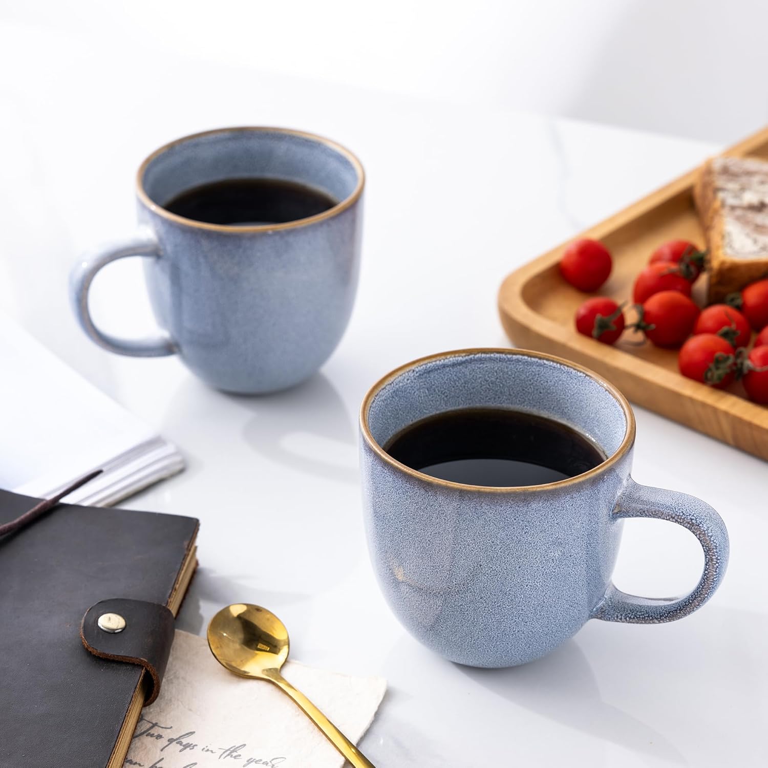 AmorArc 12oz Coffee Mugs, Ceramic Coffee Mugs set of 4 for Man, Woman, Dad, Mom, Modern Coffee Mugs with handle for Latte/Cappuccino/Milk/Cocoa. Dishwasher&Microwave Safe, Blue-Reactive Glaze