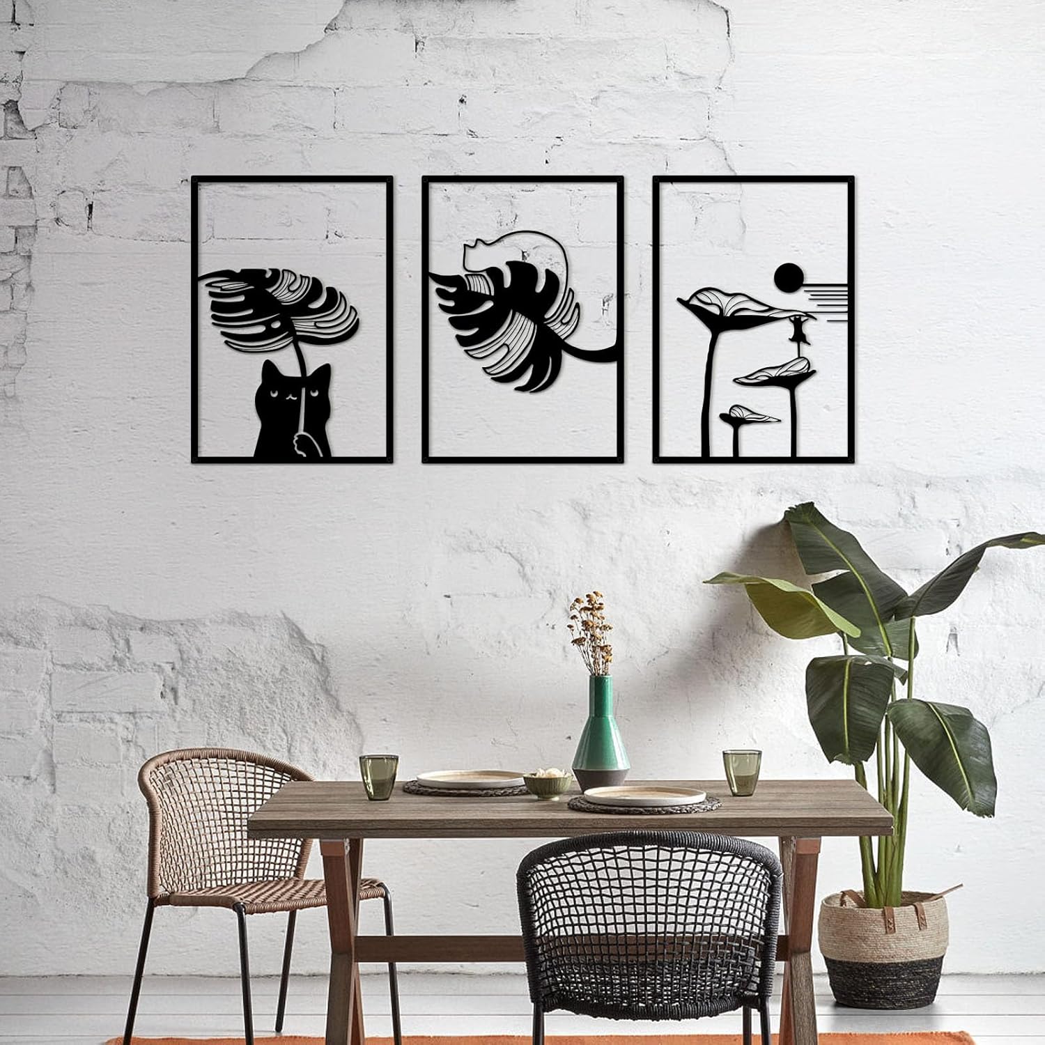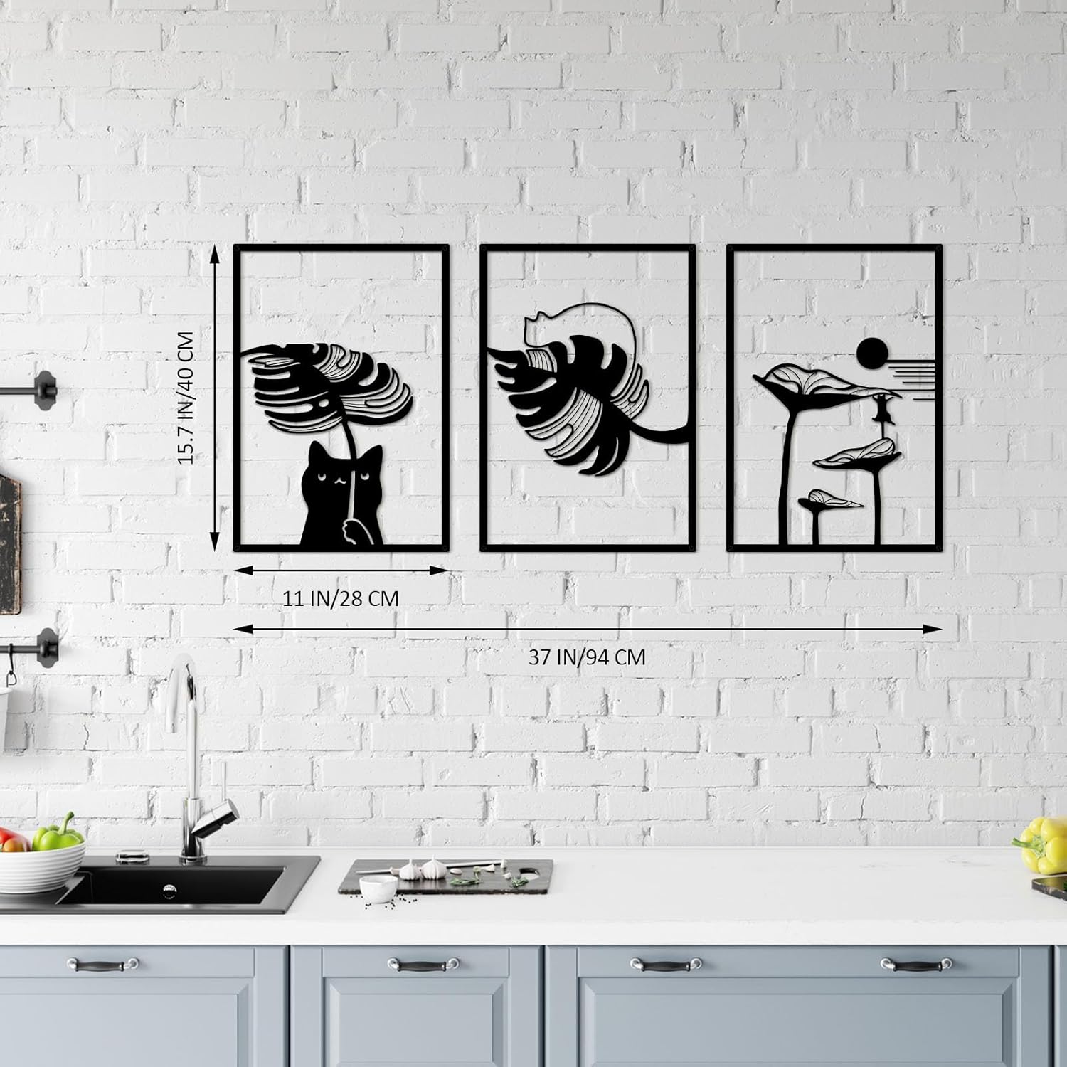 3Pcs Black Cat Wall Art, Metal Wall Sculptures, Cat Wall Decor for Cat Lovers, for Living Room Bedroom Kitchen Office Wall Hanging Décor